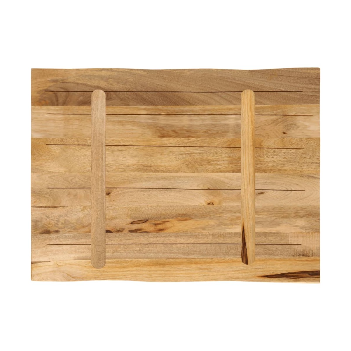 Dale una nueva vida a tu mesa con esta superficie de mesa de madera. Es una excelente solución para renovar tu mesa en casa o en un local comercial. Madera maciza de mango: La madera maciza de mango es una madera dura, tropical y resistente, que sirve para hacer muebles robustos. Las bonitas vetas de la madera hacen que cada mueble sea ligeramente diferente al resto.Diversos usos: El tablero de repuesto se puede combinar con diferentes bases según tus necesidades.Diseño de borde natural: El tablero para muebles de madera tiene un rústico borde vivo. Debido a ello, los nudos, las grietas, las formas ligeramente curvadas y los tonos de color forman parte de la madera de roble, y cada pieza de la estantería tiene su carácter único.Superficie fácil de limpiar: La superficie lisa es fácil de limpiar con un paño húmedo. Información útil:Cada artículo es único, con variaciones de color y veta. La entrega es aleatoria garantizando la exclusividad y la individualidad del producto.