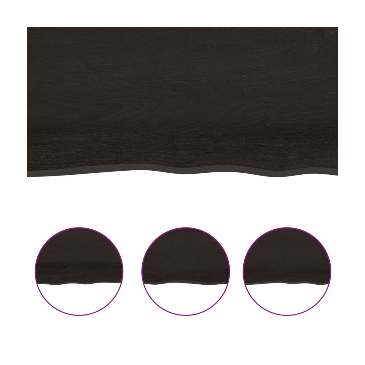 Dale una nueva vida a tu mesa con esta superficie de mesa de madera. Es una excelente solución para renovar tu mesa en casa o en un local comercial. Madera maciza de roble: El tablero de mesa es de madera maciza de roble, un hermoso material natural. La madera de roble tiene un color marrón medio y unas vetas densas, que refuerzan su aspecto único. Gracias al diseño con bisagras, se puede plegar y guardar en espacios estrechos.Diversos usos: El tablero de repuesto se puede combinar con diferentes bases según tus necesidades.Superficie tratada: El tablero de recambio se ha tratado con pintura oscura, por lo que está listo para usar, ya que no necesita un acabado adicional.Hecho a mano con borde natural: El tablero de bricolaje está meticulosamente hecho a mano y posee un borde vivo que refuerza su encanto natural. Cada pieza de estantería tiene un carácter único que mostrar. La entrega es aleatoria, lo que asegura la exclusividad e individualidad del producto. Información útil:Al ser un producto natural, la madera puede presentar nudos e imperfecciones que rellenamos con rellenos para garantizar un aspecto liso.