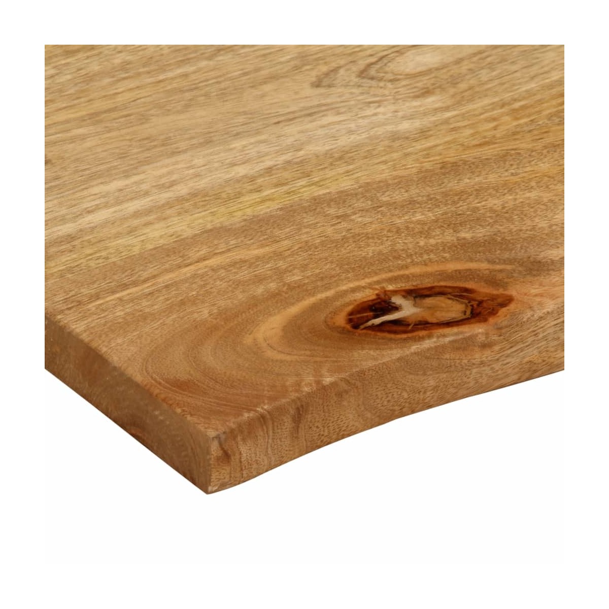 Dale una nueva vida a tu mesa con esta superficie de mesa de madera. Es una excelente solución para renovar tu mesa en casa o en un local comercial. Madera maciza de mango: La madera maciza de mango es una madera dura, tropical y resistente, que sirve para hacer muebles robustos. Las bonitas vetas de la madera hacen que cada mueble sea ligeramente diferente al resto. Diversos usos: El tablero de repuesto se puede combinar con diferentes bases según tus necesidades. Diseño de arista viva: El tablero para muebles de madera tiene un rústico borde vivo. Debido a ello, los nudos, las grietas, las formas ligeramente curvadas y los tonos de color forman parte de él, y cada estante tiene un carácter único. Superficie fácil de limpiar: La superficie lisa es fácil de limpiar con un paño húmedo. Información útil:Cada artículo es único, con variaciones de color y veta. La entrega es aleatoria garantizando la exclusividad y la individualidad del producto.