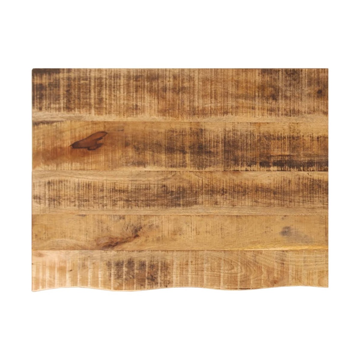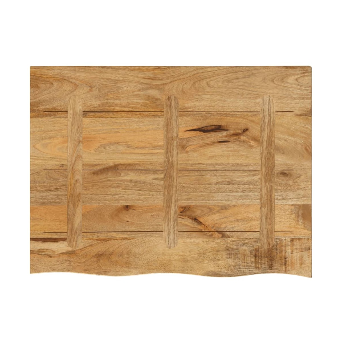 Dale una nueva vida a tu mesa con esta superficie de mesa de madera. Es una excelente solución para renovar tu mesa en casa o en un local comercial. Madera maciza de mango: La madera maciza de mango es una madera dura, tropical y resistente, que sirve para hacer muebles robustos. Las bonitas vetas de la madera hacen que cada mueble sea ligeramente diferente al resto.Diversos usos: El tablero de repuesto se puede combinar con diferentes bases según tus necesidades.Diseño de borde natural: El tablero para muebles de madera tiene un rústico borde vivo. Debido a ello, los nudos, las grietas, las formas ligeramente curvadas y los tonos de color forman parte de la madera de roble, y cada pieza de la estantería tiene su carácter único.Superficie fácil de limpiar: La superficie lisa es fácil de limpiar con un paño húmedo. Información útil:Cada artículo es único, con variaciones de color y veta. La entrega es aleatoria garantizando la exclusividad y la individualidad del producto.