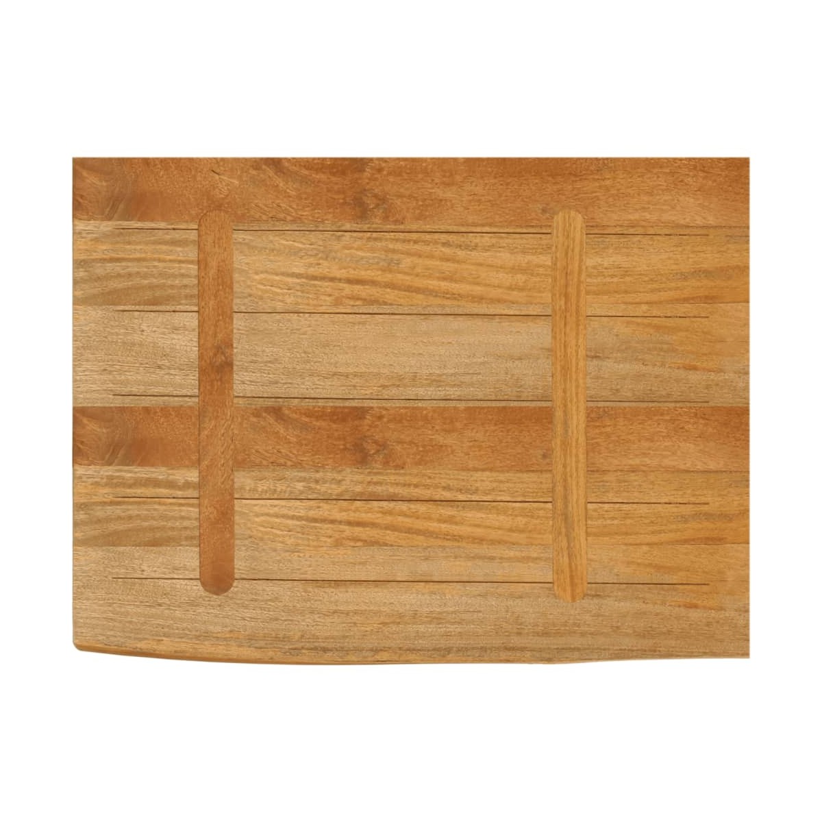 Dale una nueva vida a tu mesa con esta superficie de mesa de madera. Es una excelente solución para renovar tu mesa en casa o en un local comercial. Madera maciza de mango: La madera maciza de mango es una madera dura, tropical y resistente, que sirve para hacer muebles robustos. Las bonitas vetas de la madera hacen que cada mueble sea ligeramente diferente al resto. Diversos usos: El tablero de repuesto se puede combinar con diferentes bases según tus necesidades. Diseño de arista viva: El tablero para muebles de madera tiene un rústico borde vivo. Debido a ello, los nudos, las grietas, las formas ligeramente curvadas y los tonos de color forman parte de él, y cada estante tiene un carácter único. Superficie fácil de limpiar: La superficie lisa es fácil de limpiar con un paño húmedo. Información útil:Cada artículo es único, con variaciones de color y veta. La entrega es aleatoria garantizando la exclusividad y la individualidad del producto.
