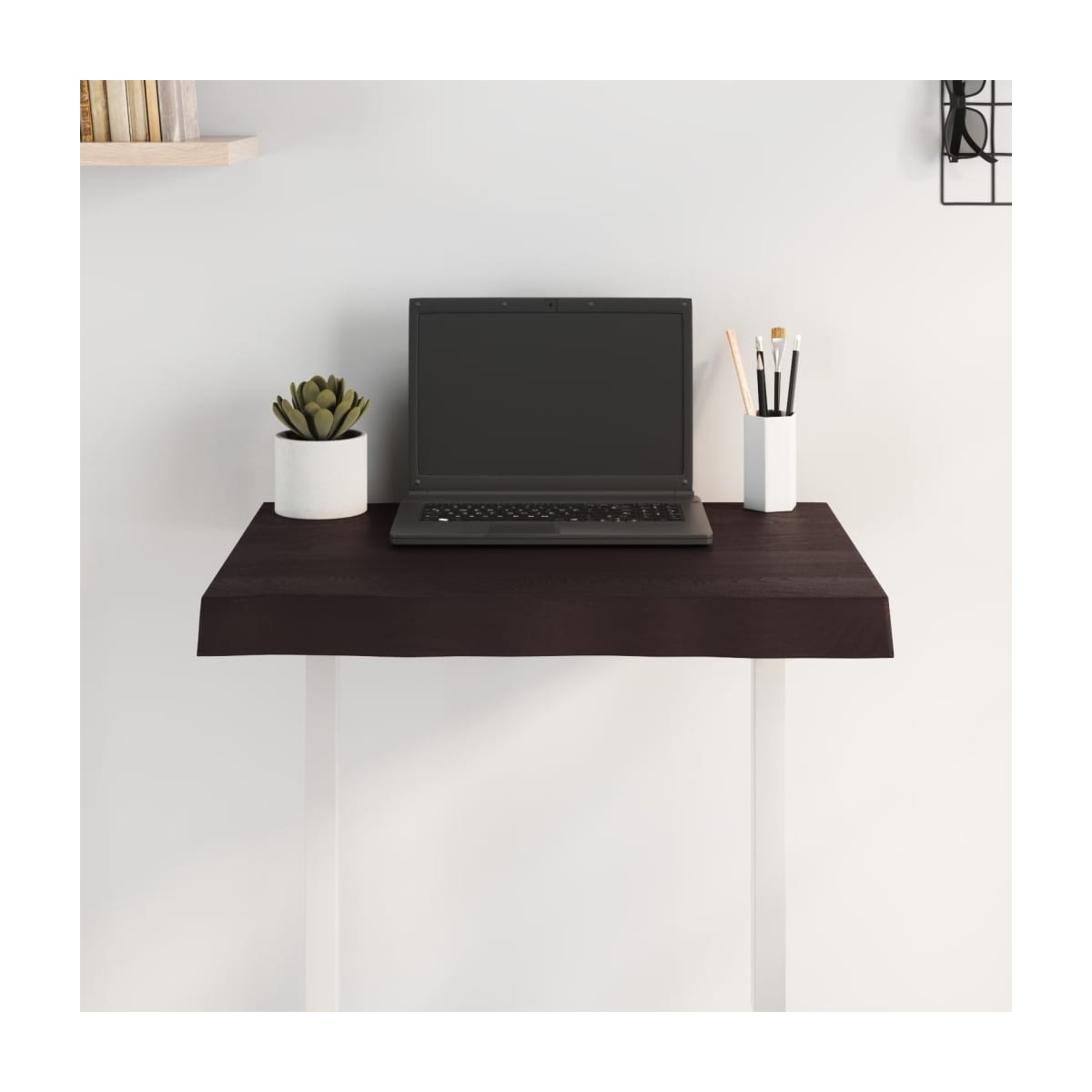 Dale una nueva vida a tu mesa con esta superficie de mesa de madera. Es una excelente solución para renovar tu mesa en casa o en un local comercial. Madera maciza de roble: La superficie para mesa es de madera maciza de roble, un hermoso material natural. La madera de roble tiene un color marrón medio y unas vetas densas, que refuerzan su aspecto único.Diversos usos: El tablero de repuesto se puede combinar con diferentes bases según tus necesidades.Superficie tratada: El tablero de recambio se ha tratado con pintura oscura, por lo que está listo para usar, ya que no necesita un acabado adicional.Hecho a mano con borde natuaral: El tablero DIY está meticulosamente hecho a mano, mostrando un borde vivo que le aporta un encanto natural. Por eso los nudos, las grietas, las formas ligeramente curvas y los tonos de color son parte de la madera de roble. Cada pieza tiene su propio carácter único para mostrar. La entrega es aleatoria, asegurando la exclusividad e individualidad del producto. Información útil:Al ser un producto natural, la madera puede presentar nudos e imperfecciones que rellenamos con rellenos para garantizar un aspecto liso.