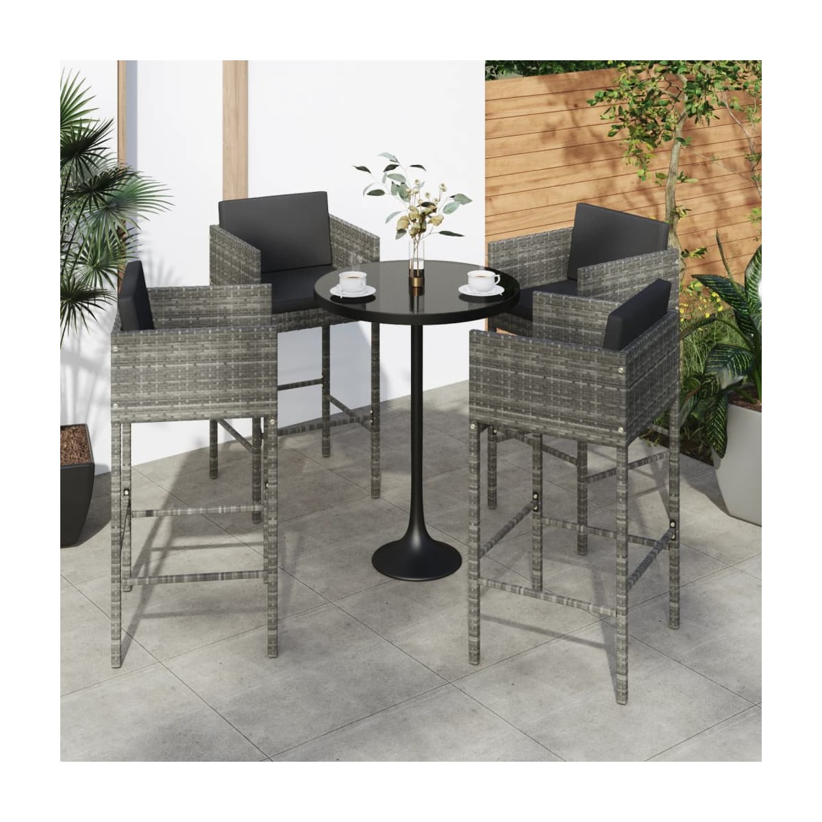 Estos taburetes de cocina, con un diseño moderno, están destinados a ser un aporte práctico para dentro y fuera de la casa. Material resistente a la intemperie: El ratán PE, también conocido como ratán sintético, es resistente a la intemperie y fácil de limpiar. La parte exterior se mantiene hermosa durante mucho tiempo. Ofrece una gran calidad, comodidad y aspecto estético.Estructura robusta: La estructura de acero con recubrimiento en polvo hace que el taburete de la barra de desayuno sea resistente y estable para el uso diario al aire libre.Asientos cómodos: El taburete de barra de cocina está diseñado con respaldo y reposabrazos para ofrecerte una experiencia de asiento cómoda.Mayor comodidad: Los cojines de acolchado grueso proporcionan la máxima comodidad durante el tiempo que pasas sentado.Fácil de mover: Gracias a la constucción ligera, la silla de bar se puede mover a otros lugares con facilidad. Información útil:Para facilitar al máximo el montaje, cada producto se entrega con un manual.