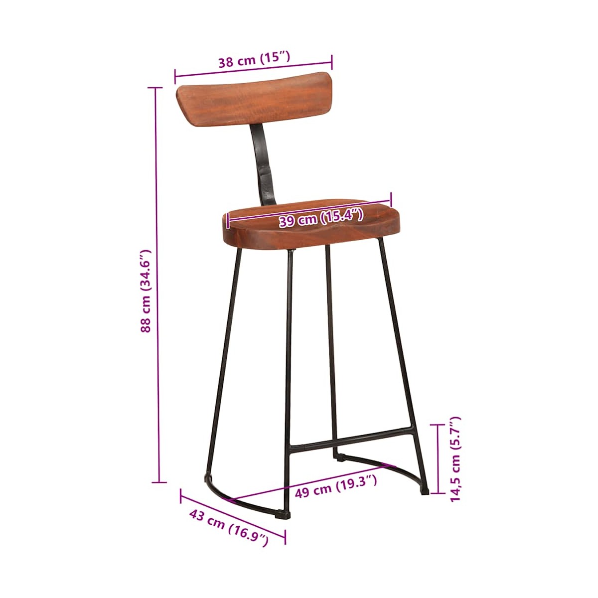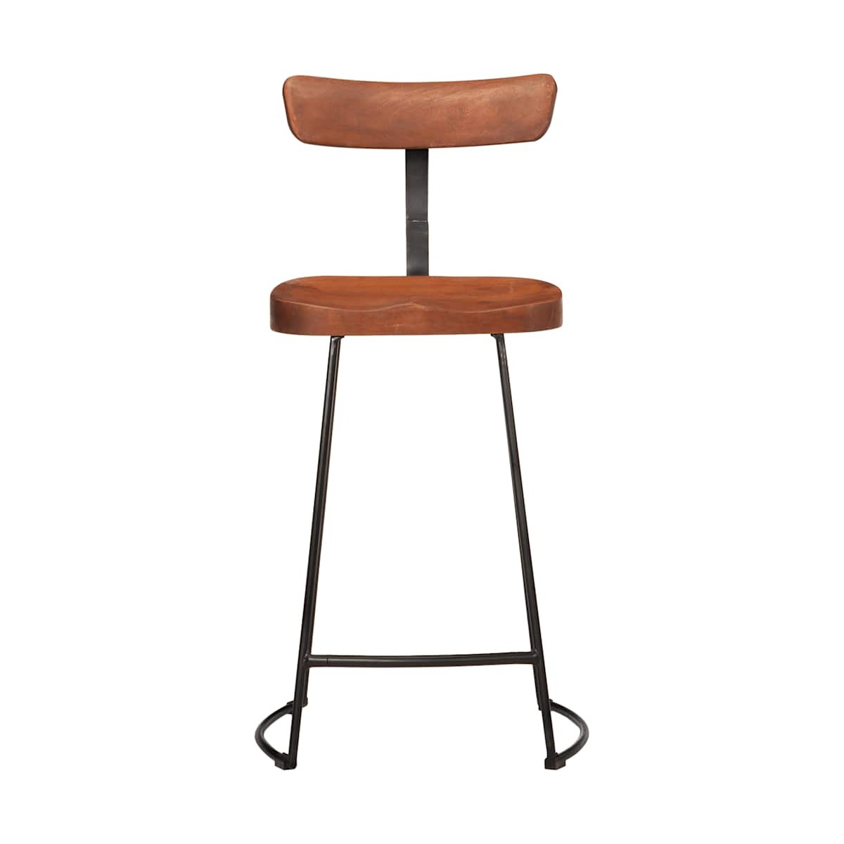 Estos taburetes de bar con un diseño moderno están pensados para ser un complemento práctico para el interior de su hogar. Material robusto y estable: La madera maciza de mango, una madera dura tropical robusta, es muy apreciada para la fabricación de muebles por su excepcional durabilidad y resistencia. Las bonitas vetas de la madera hacen que cada mueble sea ligeramente diferente al resto.Patas de metal resistentes: construido con patas de metal duraderas, el taburete de barra de cocina garantiza una estabilidad duradera, brindando un soporte confiable para el uso diario.Experiencia de asiento cómoda: el taburete de la barra de desayuno está diseñado con un respaldo de apoyo y un reposapiés integrado para garantizar la máxima comodidad al estar sentado durante largos períodos de tiempo.Amplias aplicaciones: el taburete de bar es una opción excelente para una variedad de entornos, incluidos bares y restaurantes. También puede colocarlo en su balcón o al lado de una estantería en su hogar para relajarse. También es apropiado para reuniones. Información útil:Cada artículo es único, con variaciones de color y veta. La entrega es aleatoria garantizando la exclusividad y la individualidad del producto.