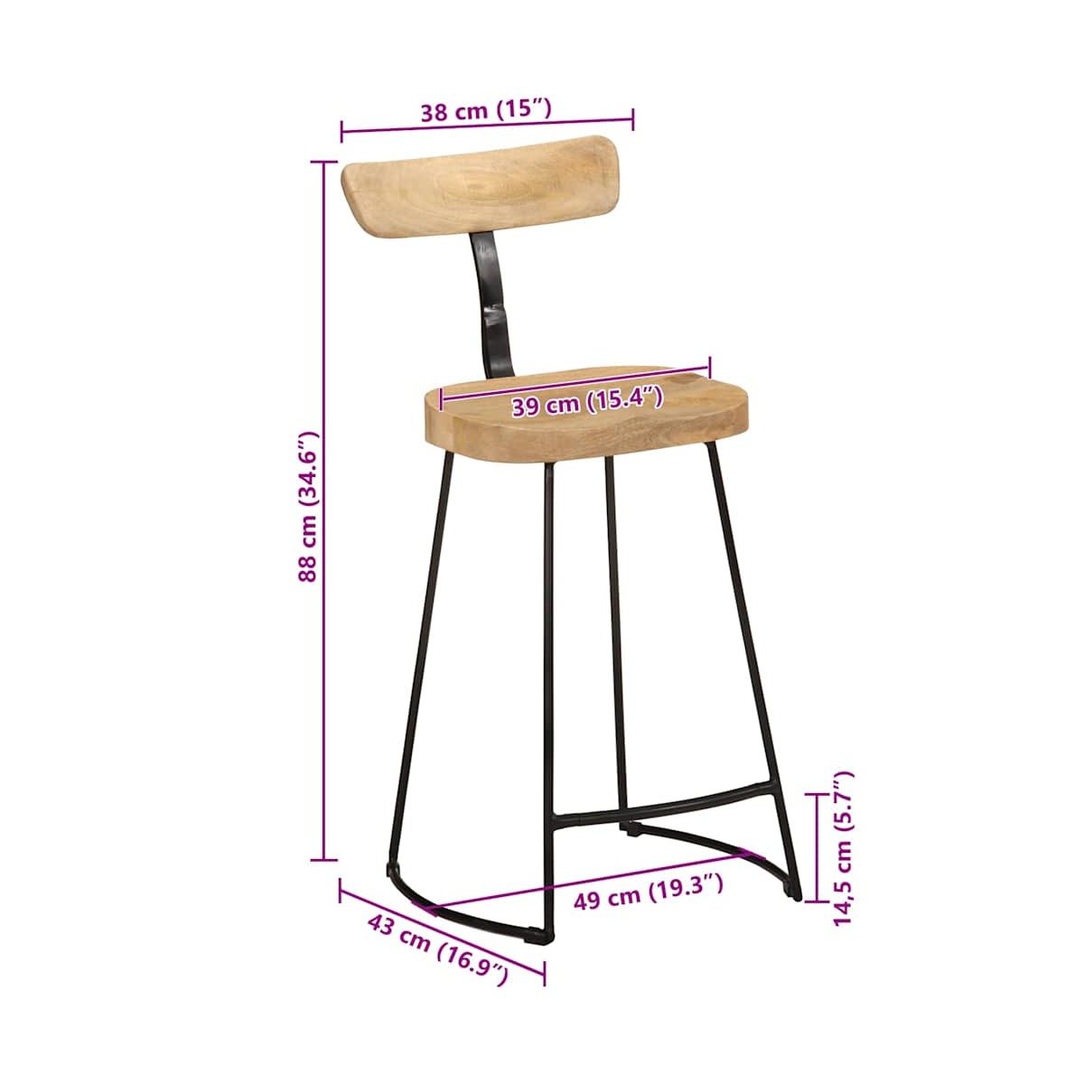 Estos taburetes de bar con un diseño moderno están pensados para ser un complemento práctico para el interior de su hogar. Material robusto y estable: La madera maciza de mango, una madera dura tropical robusta, es muy apreciada para la fabricación de muebles por su excepcional durabilidad y resistencia. Las bonitas vetas de la madera hacen que cada mueble sea ligeramente diferente al resto.Patas de metal resistentes: construido con patas de metal duraderas, el taburete de barra de cocina garantiza una estabilidad duradera, brindando un soporte confiable para el uso diario.Experiencia de asiento cómoda: el taburete de la barra de desayuno está diseñado con un respaldo de apoyo y un reposapiés integrado para garantizar la máxima comodidad al estar sentado durante largos períodos de tiempo.Amplias aplicaciones: el taburete de bar es una opción excelente para una variedad de entornos, incluidos bares y restaurantes. También puede colocarlo en su balcón o al lado de una estantería en su hogar para relajarse. También es apropiado para reuniones. Información útil:Cada artículo es único, con variaciones de color y veta. La entrega es aleatoria garantizando la exclusividad y la individualidad del producto.