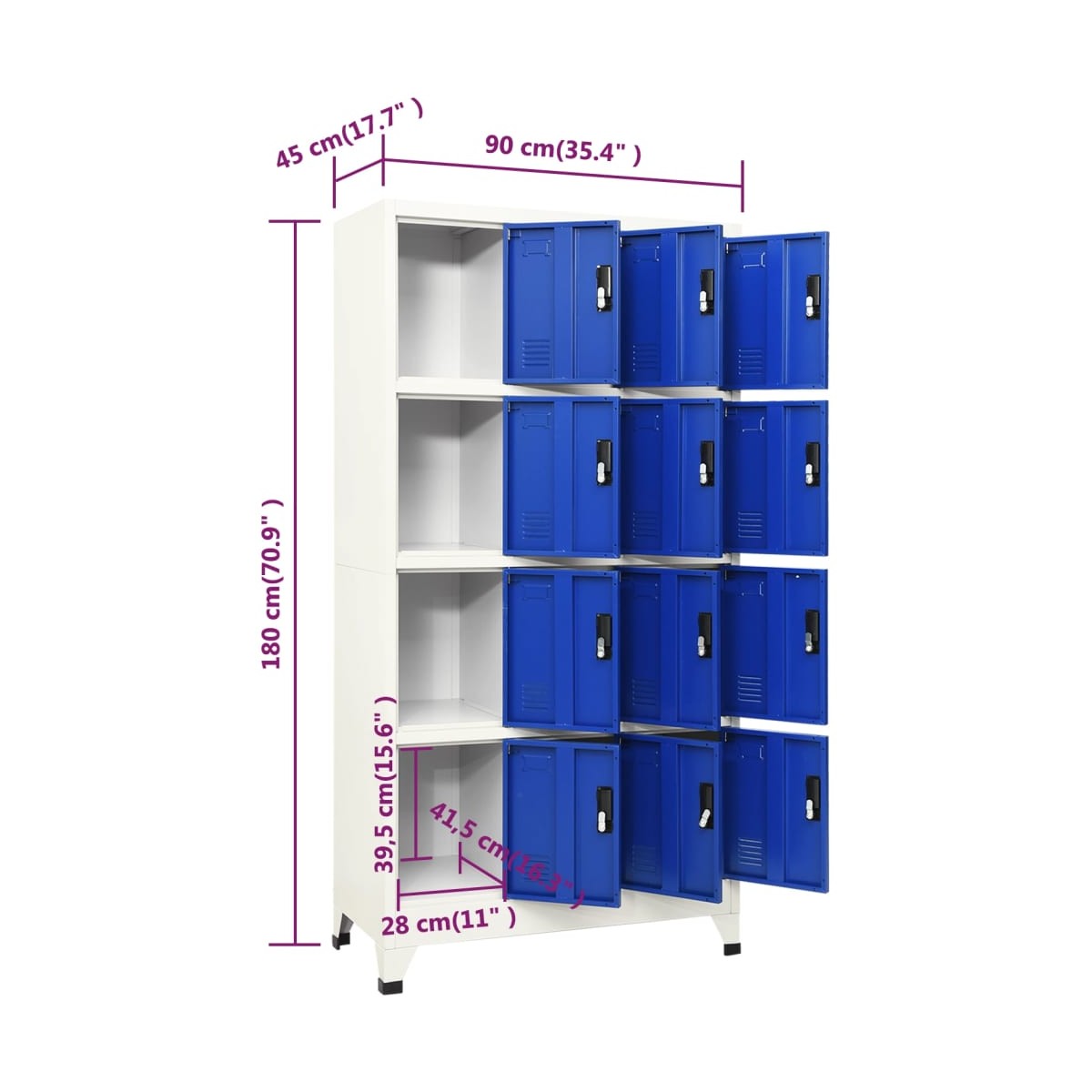 - 12 puertas con cerradura (2 llaves incluidas para cada puerta)