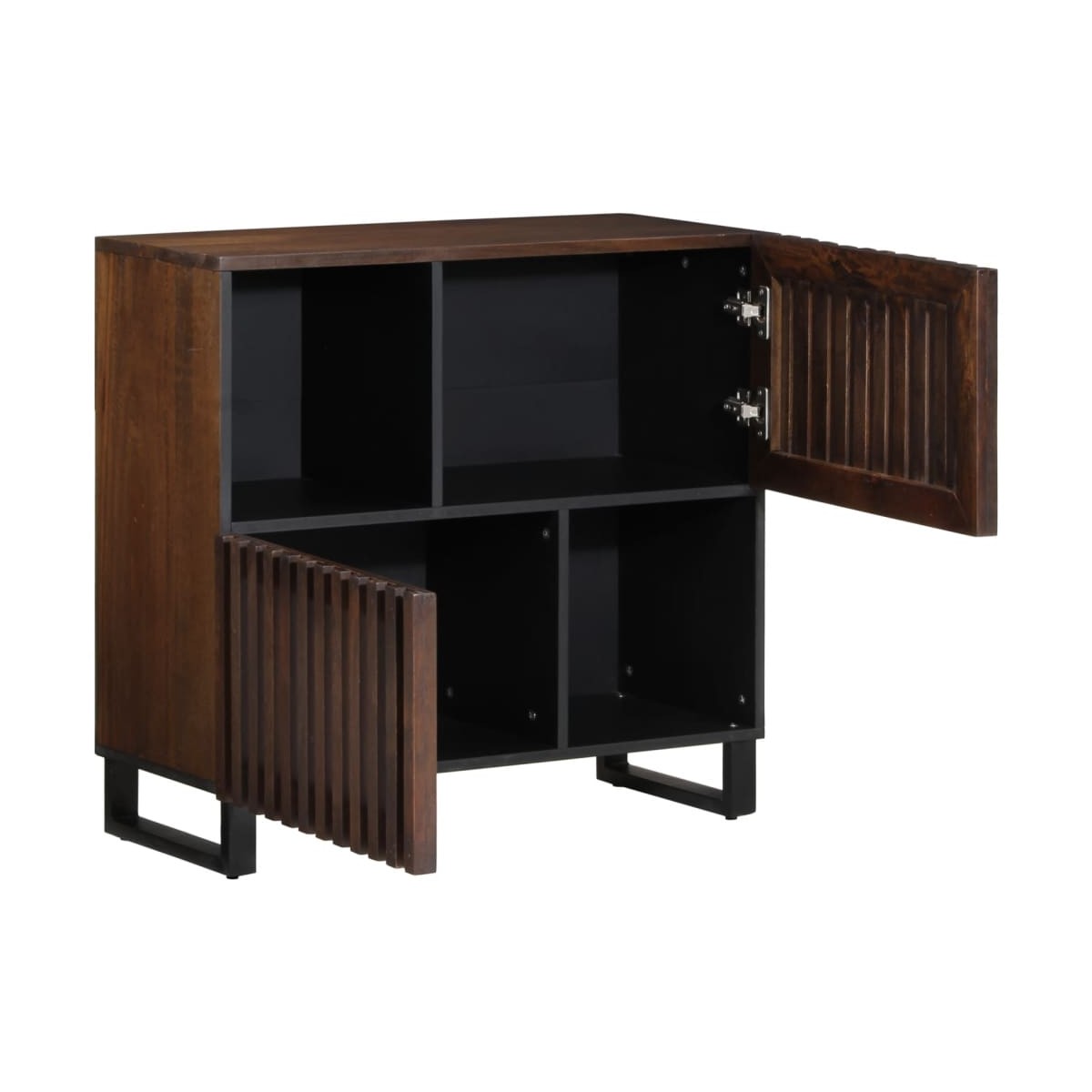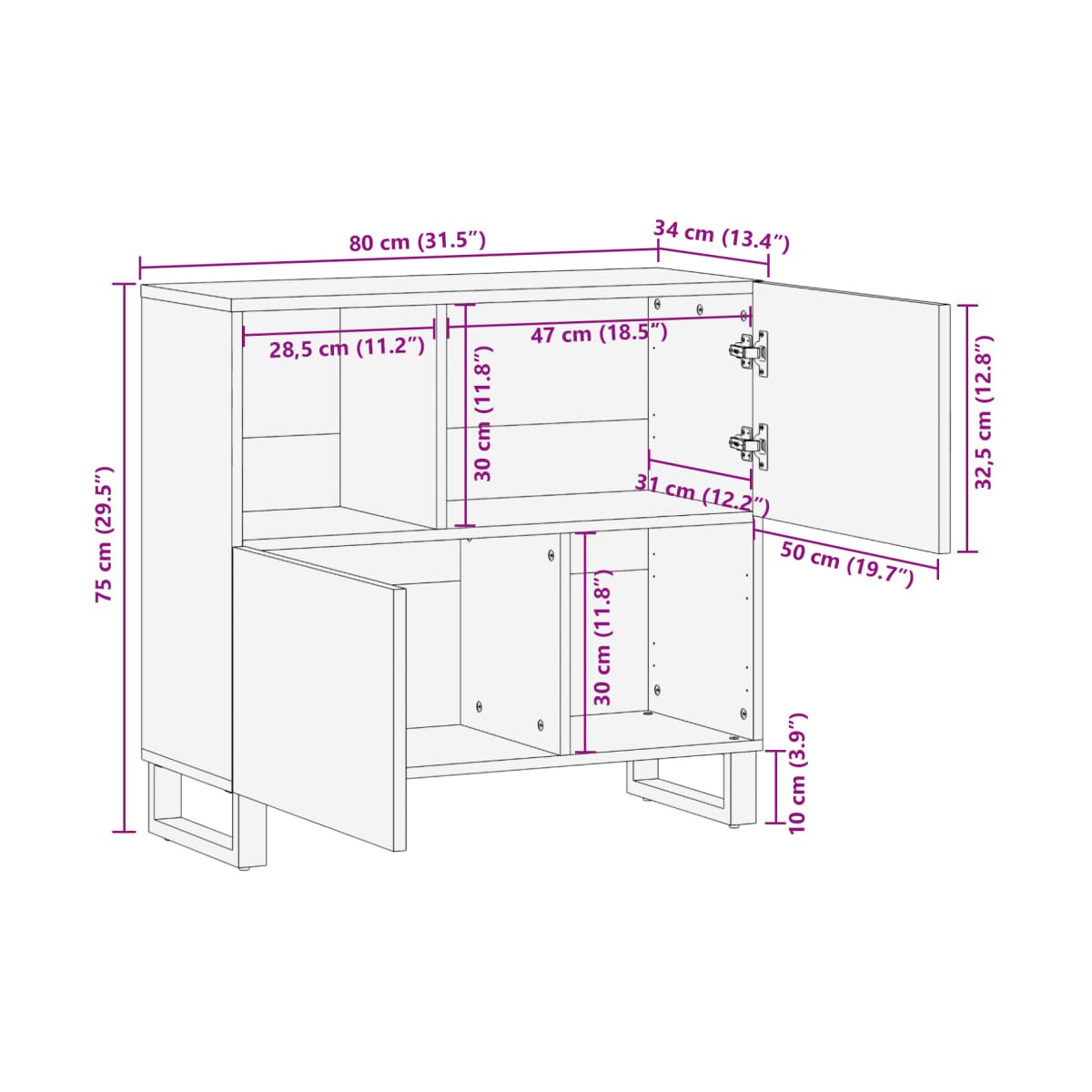 Este robusto aparador de estilo industrial es un complemento atemporal para tu salón o dormitorio. Estructura robusta y estable: El acero es fuerte, estable y duradero, lo que lo convierte en la opción ideal para una amplia gama de aplicaciones, desde la fabricación de muebles hasta la construcción.Madera maciza de mango: La madera maciza de mango es una madera dura, tropical y resistente, que sirve para hacer muebles robustos. Las bonitas vetas de la madera hacen que cada mueble sea ligeramente diferente al resto.Amplio espacio de almacenamiento: Este aparador tiene 4 compartimentos con puertas, lo que proporciona un amplio espacio de almacenamiento para mantener tus diversos elementos esenciales diarios bien organizados y al alcance de la mano.Fácil de limpiar: El armario es fácil de limpiar con un paño húmedo y requiere menos mantenimiento. Advertencia:Para evitar que vuelque, este producto debe usarse con el dispositivo de fijación a la pared suministrado.
