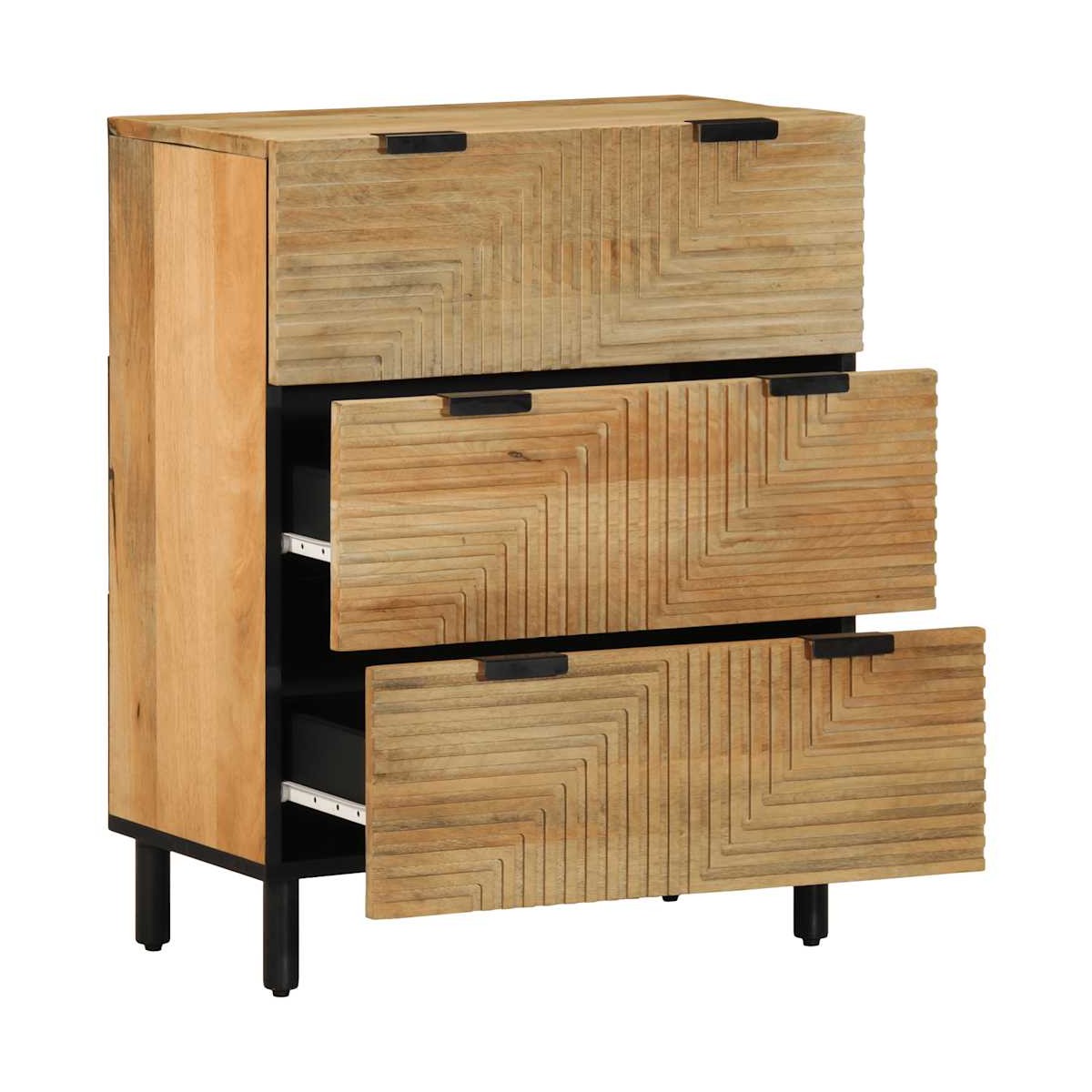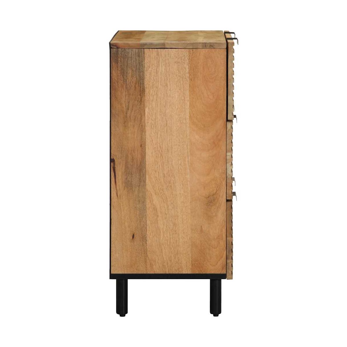 Este aparador ofrece tanto un atractivo decorativo como un práctico espacio de almacenamiento, lo que lo convierte en el complemento perfecto para tu hogar. Material robusto y estable: La madera maciza de mango, una madera dura tropical robusta, es muy apreciada para la fabricación de muebles por su excepcional durabilidad y resistencia. Las bonitas vetas de la madera hacen que cada mueble sea ligeramente diferente al resto.Amplio espacio de almacenamiento: El armario ofrece un amplio espacio de almacenamiento para los artículos de comedor y otros artículos del hogar para mantenerlos organizados y al alcance de la mano.Superficie robusta: El aparador tiene una superficie resistente, en la que puedes colocar tus objetos decorativos, álbumes de fotos o plantas pequeñas.Amplios usos: Puedes utilizar este armario auxiliar en la cocina o el baño, o incluso como armario de almacenaje en dormitorios, aseos, entradas, pasillos, oficinas, comedores y otras zonas de la casa. Información útil:Cada artículo es único, con variaciones de color y veta. La entrega es aleatoria garantizando la exclusividad y la individualidad del producto. Advertencia:Para evitar que vuelque, este producto debe usarse con el dispositivo de fijación a la pared suministrado.