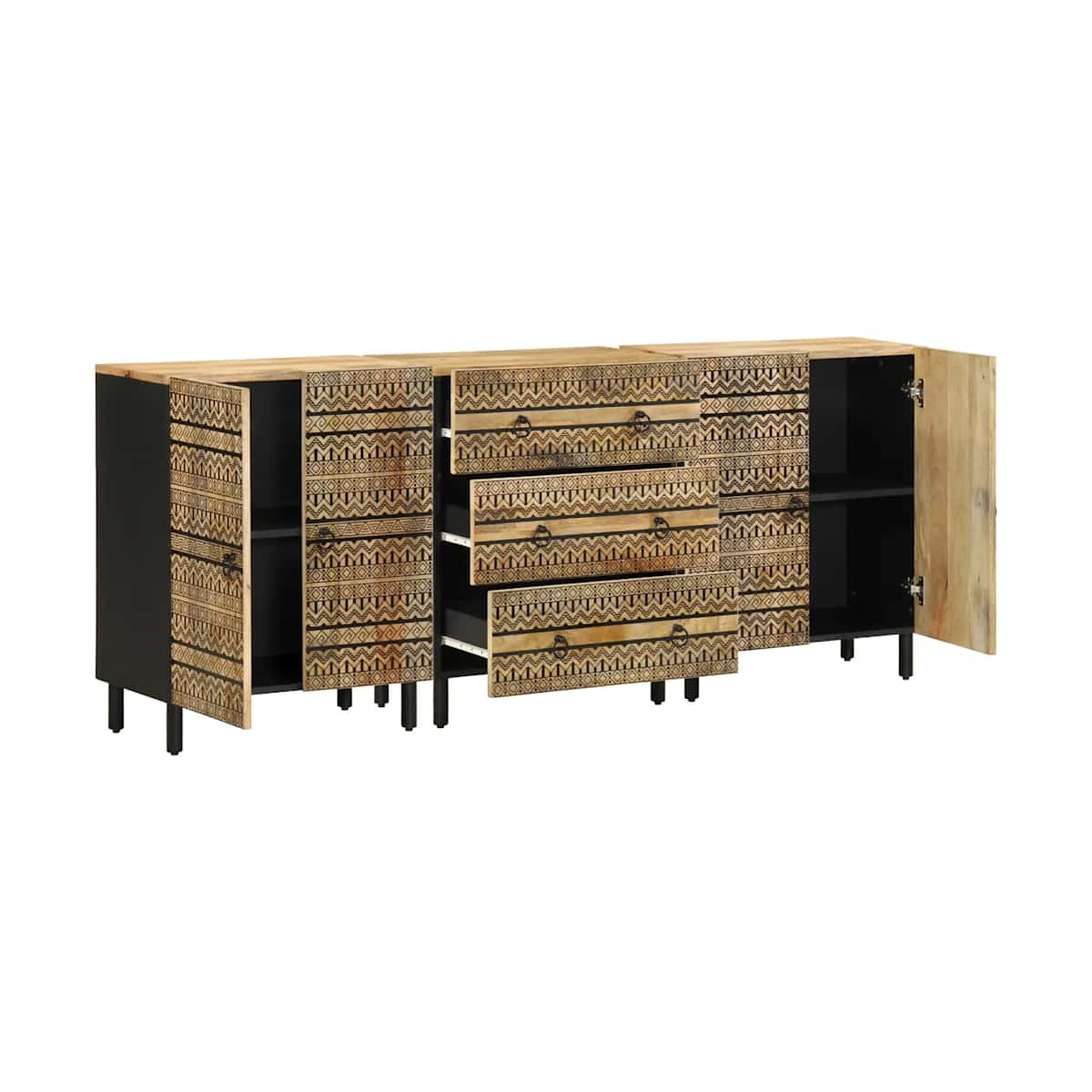Estos aparadores clásicos serán un aporte decorativo y práctico para la decoración de tu hogar. Material robusto y estable: La madera maciza de mango, una madera dura tropical robusta, es muy apreciada para la fabricación de muebles por su excepcional durabilidad y resistencia. Las bonitas vetas de la madera hacen que cada mueble sea ligeramente diferente al resto.Amplio espacio de almacenaje: Este armario ofrece un amplio espacio de almacenamiento para mantener tus revistas, libros, DVD, mando a distancia y otros objetos pequeños bien organizados y al alcance de la mano.Superficie estable y resistente: La resistente superficie de la mesa es ideal para dejar bebidas o cualquier otra cosa que necesites al alcance de la mano.Estructura estable y duradera: La estructura de hierro del aparador realza tu hogar con un estilo industrial y proporciona una durabilidad, estabilidad y resistencia a la corrosión excepcionales. Información útil:Cada artículo es único, con variaciones de color y veta. La entrega es aleatoria garantizando la exclusividad y la individualidad del producto. Advertencia:Para evitar que vuelque, este producto debe usarse con el dispositivo de fijación a la pared suministrado.