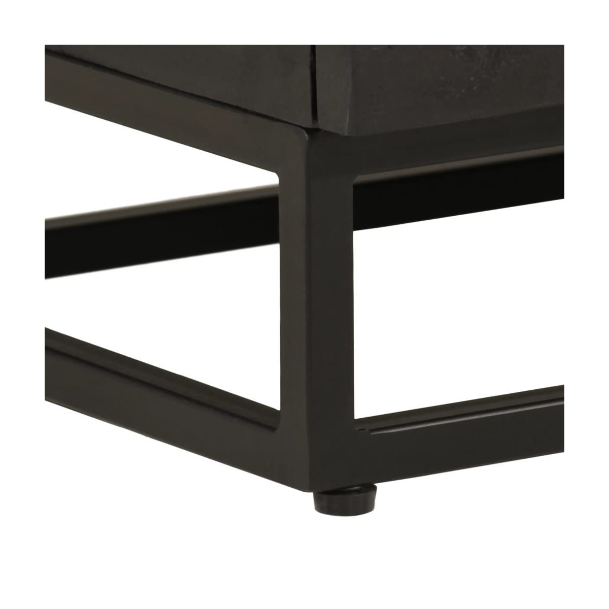 Esta mesita de noche, con un diseño elegante, es un aporte atemporal para la decoración de tu hogar. Madera maciza de mango: La madera maciza de mango es una madera dura, tropical y resistente, que sirve para fabricar muebles robustos. Las bonitas vetas de la madera hacen que cada mueble sea ligeramente diferente al resto. Hecho de madera maciza de mango, el mueble es duradero y estable. Amplio espacio de almacenaje: La mesita de noche ofrece un práctico espacio de almacenaje para mantener las cosas organizadas y al alcance de la mano. Superficie estable: La superficie de este mueble auxiliar es perfecta para exponer objetos decorativos, marcos de fotos y plantas. Patas resistentes: Las patas de hierro aumentan la robustez y estabilidad de los muebles del dormitorio. Advertencia:Para evitar que vuelque, este producto debe usarse con el dispositivo de fijación a la pared suministrado.