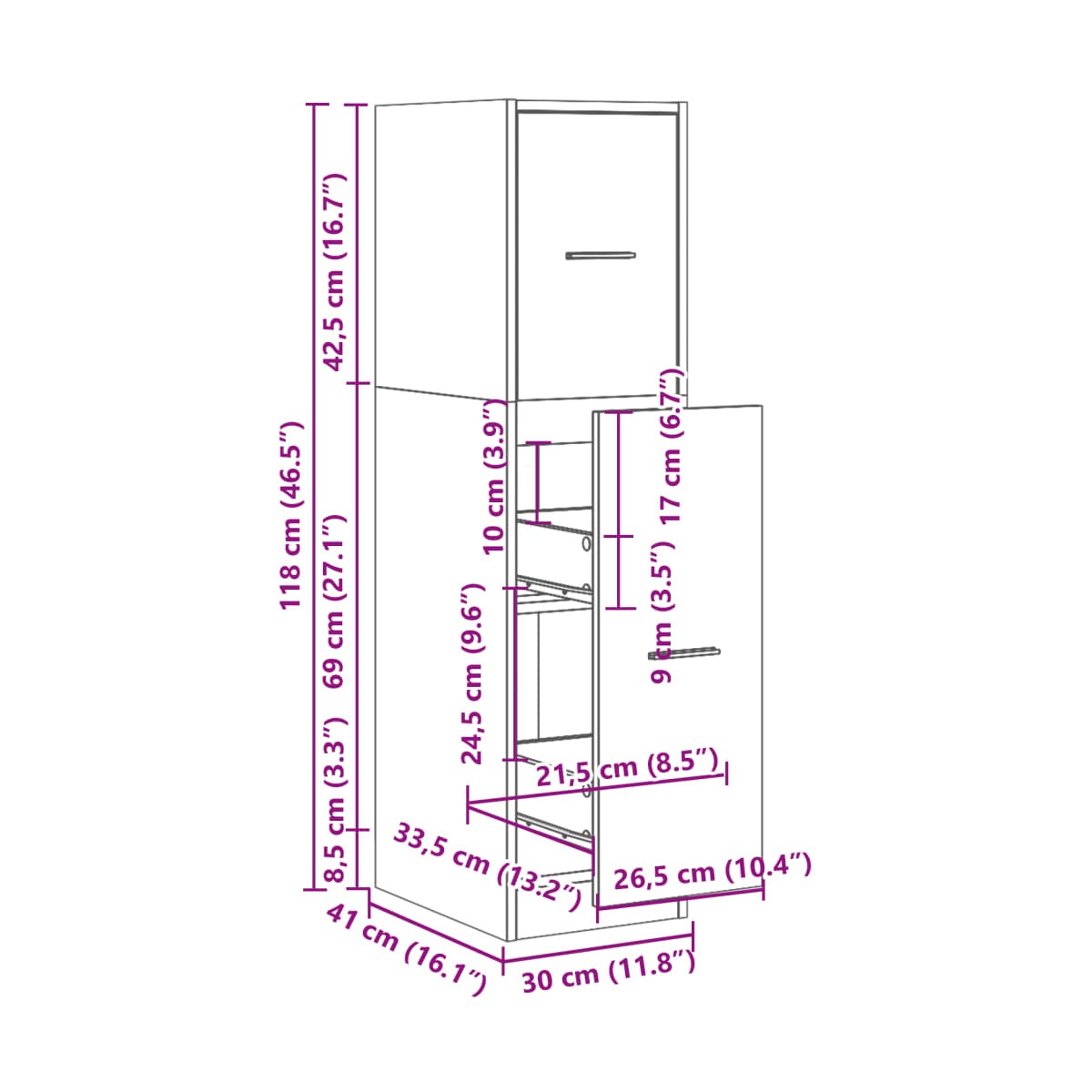 Este clásico mueble de boticario está destinado a ser un aporte decorativo y práctico a tu hogar y oficina. Material estable y duradero: La madera de ingeniería es un material duradero y estable con una superficie lisa que es resistente a la humedad, la deformación y la rotura, lo que la convierte en una opción fiable para una variedad de proyectos.Amplio espacio de almacenamiento: El baúl de boticario proporciona un amplio espacio de almacenamiento para mantener tus elementos esenciales diarios bien organizados y proteger tus cosas del polvo y la suciedad.Fácil de usar: El mueble de boticario cuenta con guías metálicas de calidad y elegantes asas, por lo que se puede mover suavemente para facilitar el acceso a tus artículos almacenados.Diversos usos: Este aparador de boticario podría utilizarse como armario de farmacia, armario de almacenamiento o armario de cajones en la cocina, el salón o la oficina, según tus necesidades. Advertencia:Para evitar que vuelque, este producto debe usarse con el dispositivo de fijación a la pared suministrado. Información útil:Los tornillos y los tacos para el interior de la pared no están incluidos. Busca y utiliza tornillos y tacos adecuados para tus paredes. Si no lo tienes claro, busca asesoramiento profesional. Lee y sigue cada paso de las instrucciones cuidadosamente.