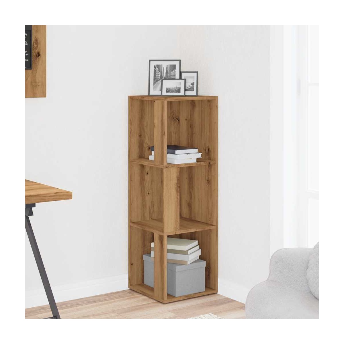 Ahora puedes conseguir un plus de espacio de almacenamiento y un espacio único para guardar tus artículos favoritos con este clásico mueble de esquina. Material estable y duradero: La madera de ingeniería es un material duradero y estable con una superficie lisa que es resistente a la humedad, la deformación y la rotura, lo que la convierte en una opción fiable para una variedad de proyectos.Amplio espacio de almacenamiento: El armario de almacenamiento proporciona un amplio espacio de almacenamiento para mantener tus revistas, libros, DVD y dispositivos multimedia bien organizados y al alcance de la mano.Diseño que ahorra espacio: Gracias al compacto tamaño, este mueble de almacenaje ocupa muy poco espacio. Así puedes montar un rincón acogedor en salones, dormitorios y oficinas pequeñas.Superficie fácil de limpiar: La estantería es fácil de limpiar con un paño húmedo. Advertencia:Para evitar que vuelque, este producto debe usarse con el dispositivo de fijación a la pared suministrado.