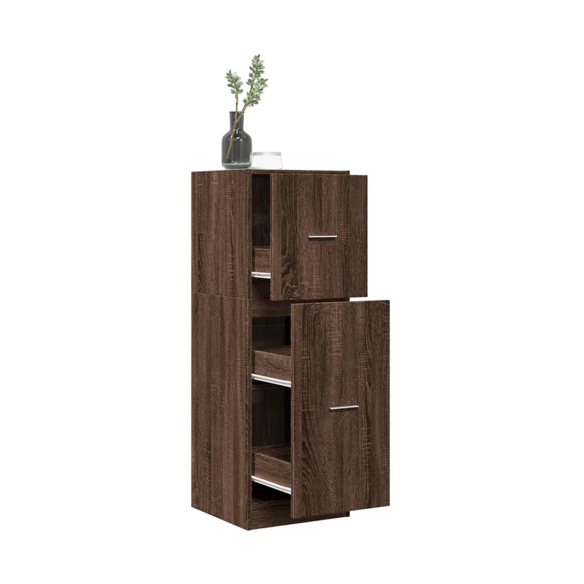 Este clásico mueble de boticario está destinado a ser un aporte decorativo y práctico a tu hogar y oficina. Material estable y duradero: La madera de ingeniería es un material duradero y estable con una superficie lisa que es resistente a la humedad, la deformación y la rotura, lo que la convierte en una opción fiable para una variedad de proyectos.Amplio espacio de almacenamiento: El baúl de boticario proporciona un amplio espacio de almacenamiento para mantener tus elementos esenciales diarios bien organizados y proteger tus cosas del polvo y la suciedad.Fácil de usar: El mueble de boticario cuenta con guías metálicas de calidad y elegantes asas, por lo que se puede mover suavemente para facilitar el acceso a tus artículos almacenados.Diversos usos: Este aparador de boticario podría utilizarse como armario de farmacia, armario de almacenamiento o armario de cajones en la cocina, el salón o la oficina, según tus necesidades. Advertencia:Para evitar que vuelque, este producto debe usarse con el dispositivo de fijación a la pared suministrado. Información útil:Los tornillos y los tacos para el interior de la pared no están incluidos. Busca y utiliza tornillos y tacos adecuados para tus paredes. Si no lo tienes claro, busca asesoramiento profesional. Lee y sigue cada paso de las instrucciones cuidadosamente.