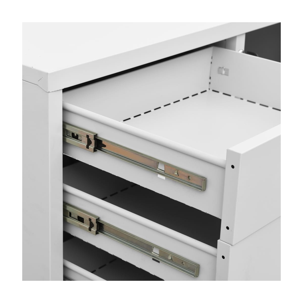 Este armario de oficina con jardinera es una opción perfecta para almacenar diferentes artículos y cultivar flores o plantas. El armario con jardinera está fabricado en acero y cristal templado, lo que lo hace robusto y estable, además de fácil de limpiar. Tiene 1 estante ajustable, 3 cajones y cerraduras, que brindan un amplio espacio de almacenamiento para mantener tus DVD, dispositivos multimedia, libros y pequeños artículos esenciales organizados y al alcance de la mano. Además, la caja de plantas puede acomodar una cantidad considerable de plantas y flores verdes, perfectas para diferentes espacios. Su diseño moderno será un gran aporte decorativo para cualquier habitación u oficina.
