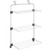 El tendedero colgante Gale de Metaltex se puede colgar sobre la puerta o la pared de la ducha para proporcionar una solución que ahorra espacio para secar ropa y toallas. El tendedero dispone de ganchos reversibles que se adaptan a casi todas las puertas y paredes de ducha (con un grosor de entre 0 y 4 cm). El tendedero tiene 3 rejillas con una longitud total de secado de 11 metros. El tendedero pertenece a la colección Trend. Se caracteriza por un revestimiento gris plateado en combinación con elementos de plástico negro satinado. El tendedero de Metaltex tiene una capa Epotherm que lo hace resistente al óxido y antiestático. Ofrece mayor resistencia y durabilidad, incluso cuando se usa en el exterior o para colgar. Puedes plegar el tendedero a un tamaño compacto después de usarlo y guardarlo dentro de casa.