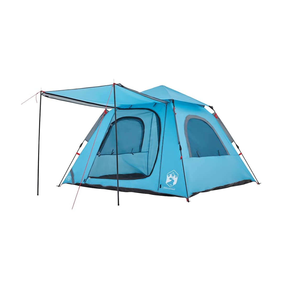 Esta tienda de acampada, con un aspecto moderno, te protege de las inclemencias del tiempo, y te proporciona un lugar acogedor para tus aventuras en cualquier lugar. Diseño impermeable integral: Esta tienda de campaña, hecha de poliéster con revestimiento de PU, es impermeable y resistente al viento. Las costuras selladas evitan eficazmente la entrada de agua de lluvia, mientras que la lona de suelo resistente ayuda a mantener el interior seco y cómodo.Sistema de apertura rápida: Monta la tienda sin esfuerzo con el sistema de apertura rápida. Tumba la tienda, extiende las varillas premontadas hasta que encajen y ¡listo!Postes King incluidos para el toldo: Esta tienda de campaña incluye postes King que facilitan el apuntalamiento de la puerta de entrada, creando un toldo. Ahora puedes disfrutar del aire libre a la sombra.Toldo desmontable: La lona impermeable desmontable se puede acoplar a la parte superior de la tienda para protegerla de la intemperie y la intimidad.Ligera y portátil: El diseño plegable y ligero te permite empacar fácilmente la tienda y guardarla en la bolsa de transporte incluida para facilitar su transporte. Advertencia:Mantén todas las llamas y fuentes de calor alejadas del tejido de este producto.
