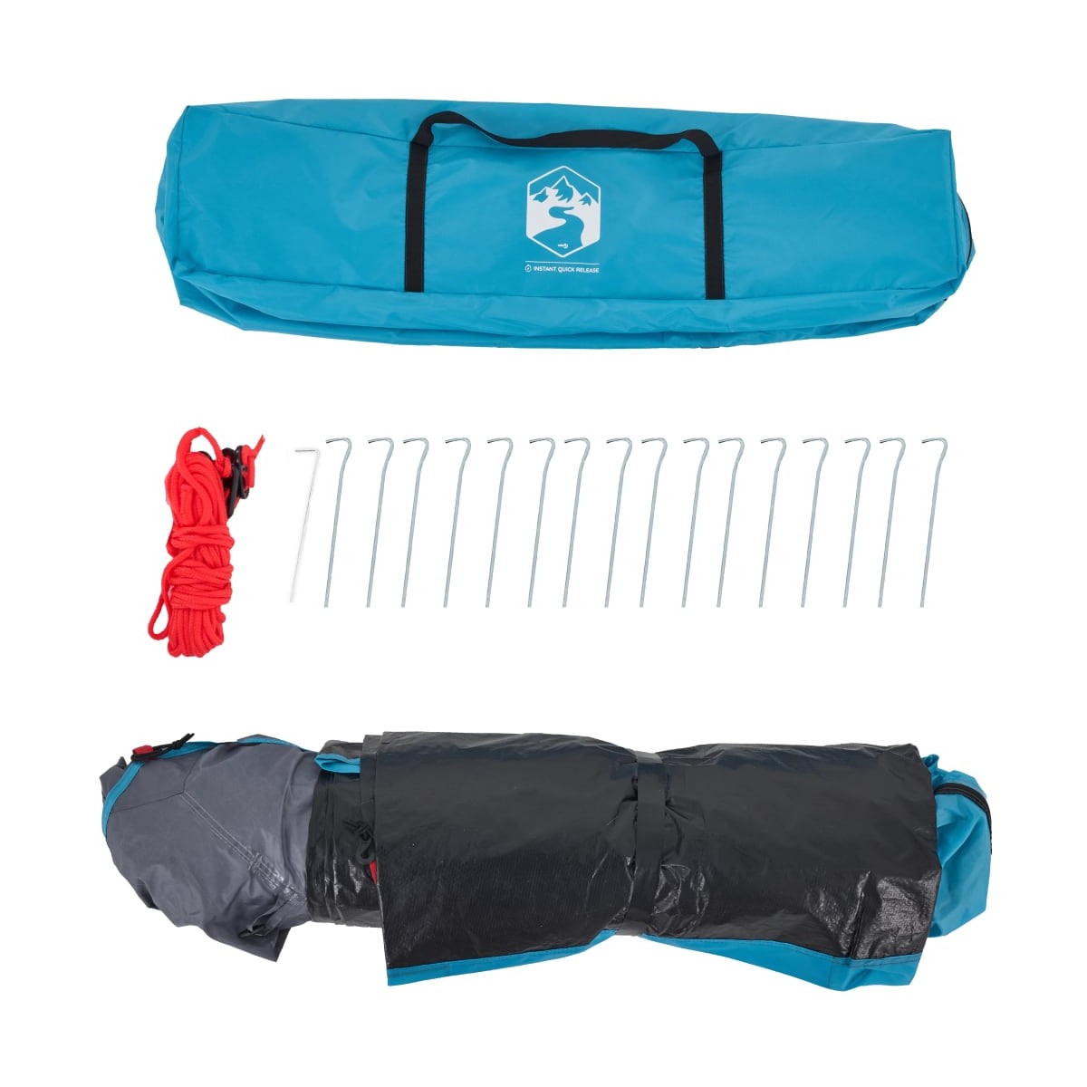 Esta tienda de acampada, con un aspecto moderno, te protege de las inclemencias del tiempo, y te proporciona un lugar acogedor para tus aventuras en cualquier lugar. Diseño impermeable integral: Esta tienda de campaña, hecha de poliéster con revestimiento de PU, es impermeable y resistente al viento. Las costuras selladas evitan eficazmente la entrada de agua de lluvia, mientras que la lona de suelo resistente ayuda a mantener el interior seco y cómodo.Sistema de apertura rápida: Monta la tienda sin esfuerzo con el sistema de apertura rápida. Tumba la tienda, extiende las varillas premontadas hasta que encajen y ¡listo!Toldo desmontable: La lona impermeable desmontable se puede acoplar a la parte superior de la tienda para protegerla de la intemperie y la intimidad.Acceso conveniente al cable eléctrico: El E-port te permite conectar fácilmente un cable de extensión de una fuente de alimentación externa a tu tienda.Ligera y portátil: El diseño plegable y ligero te permite empacar fácilmente la tienda y guardarla en la bolsa de transporte incluida para facilitar su transporte. Advertencia:Mantén todas las llamas y fuentes de calor alejadas del tejido de este producto.