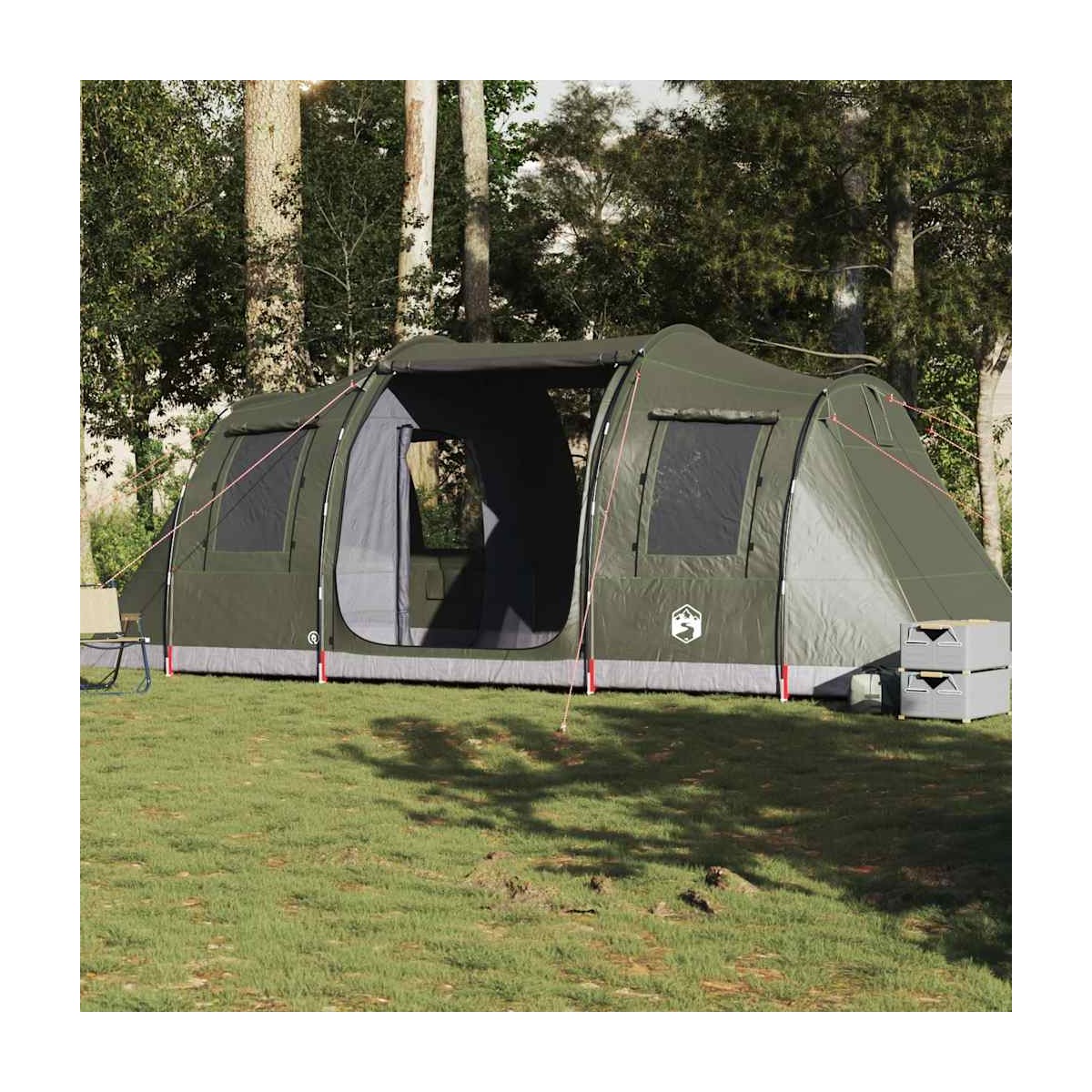 Esta tienda de acampada, con un aspecto moderno, te protege de las inclemencias del tiempo, y te proporciona un lugar acogedor para tus aventuras en cualquier lugar. Diseño impermeable integral: Esta tienda de campaña, hecha de poliéster con revestimiento de PU, es impermeable y resistente al viento. Las costuras selladas evitan eficazmente la entrada de agua de lluvia, mientras que la lona de suelo resistente ayuda a mantener el interior seco y cómodo. Fácil de montar y desmontar: Montar y desmontar la tienda es facilísimo gracias a las varillas de fibra de vidrio, muy flexibles y ligeras, y al práctico sistema de anclaje mediante pasadores y anillas. Amplio espacio: La carpa presenta una estructura de dos habitaciones que funcionan de forma independiente sin interferir entre sí. Acceso conveniente al cable eléctrico: El E-port te permite conectar fácilmente un cable de extensión de una fuente de alimentación externa a tu tienda. Ligera y portátil: El diseño plegable y ligero te permite empacar fácilmente la tienda y guardarla en la bolsa de transporte incluida para facilitar su transporte. Advertencia:Mantén todas las llamas y fuentes de calor alejadas del tejido de este producto.