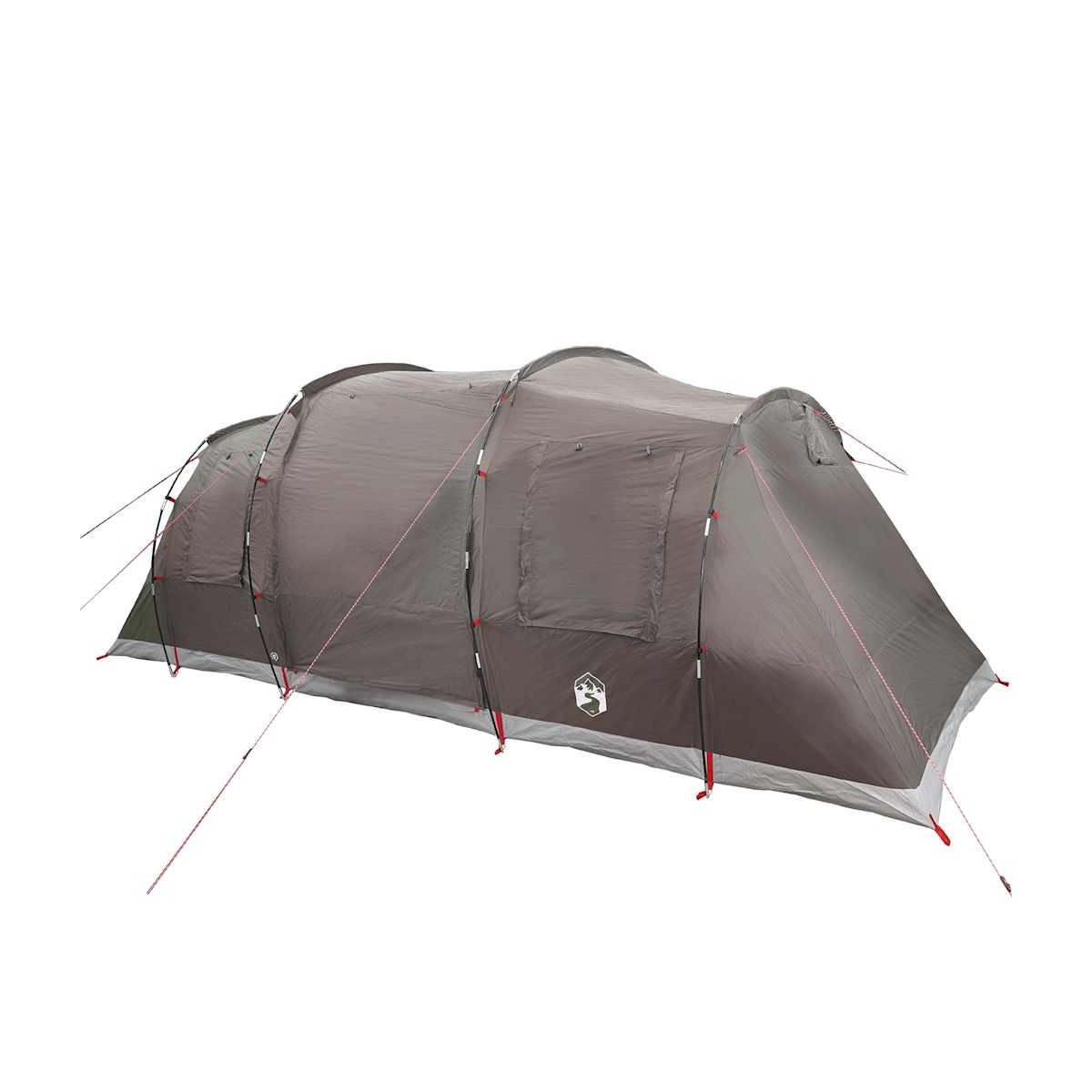 Esta tienda de acampada, con un aspecto moderno, te protege de las inclemencias del tiempo, y te proporciona un lugar acogedor para tus aventuras en cualquier lugar. Diseño impermeable integral: Esta tienda de campaña, hecha de poliéster con revestimiento de PU, es impermeable y resistente al viento. Las costuras selladas evitan eficazmente la entrada de agua de lluvia, mientras que la lona de suelo resistente ayuda a mantener el interior seco y cómodo. Fácil de montar y desmontar: Montar y desmontar la tienda es facilísimo gracias a las varillas de fibra de vidrio, muy flexibles y ligeras, y al práctico sistema de anclaje mediante pasadores y anillas. Amplio espacio: La carpa presenta una estructura de dos habitaciones que funcionan de forma independiente sin interferir entre sí. Acceso conveniente al cable eléctrico: El E-port te permite conectar fácilmente un cable de extensión de una fuente de alimentación externa a tu tienda. Ligera y portátil: El diseño plegable y ligero te permite empacar fácilmente la tienda y guardarla en la bolsa de transporte incluida para facilitar su transporte. Advertencia:Mantén todas las llamas y fuentes de calor alejadas del tejido de este producto.
