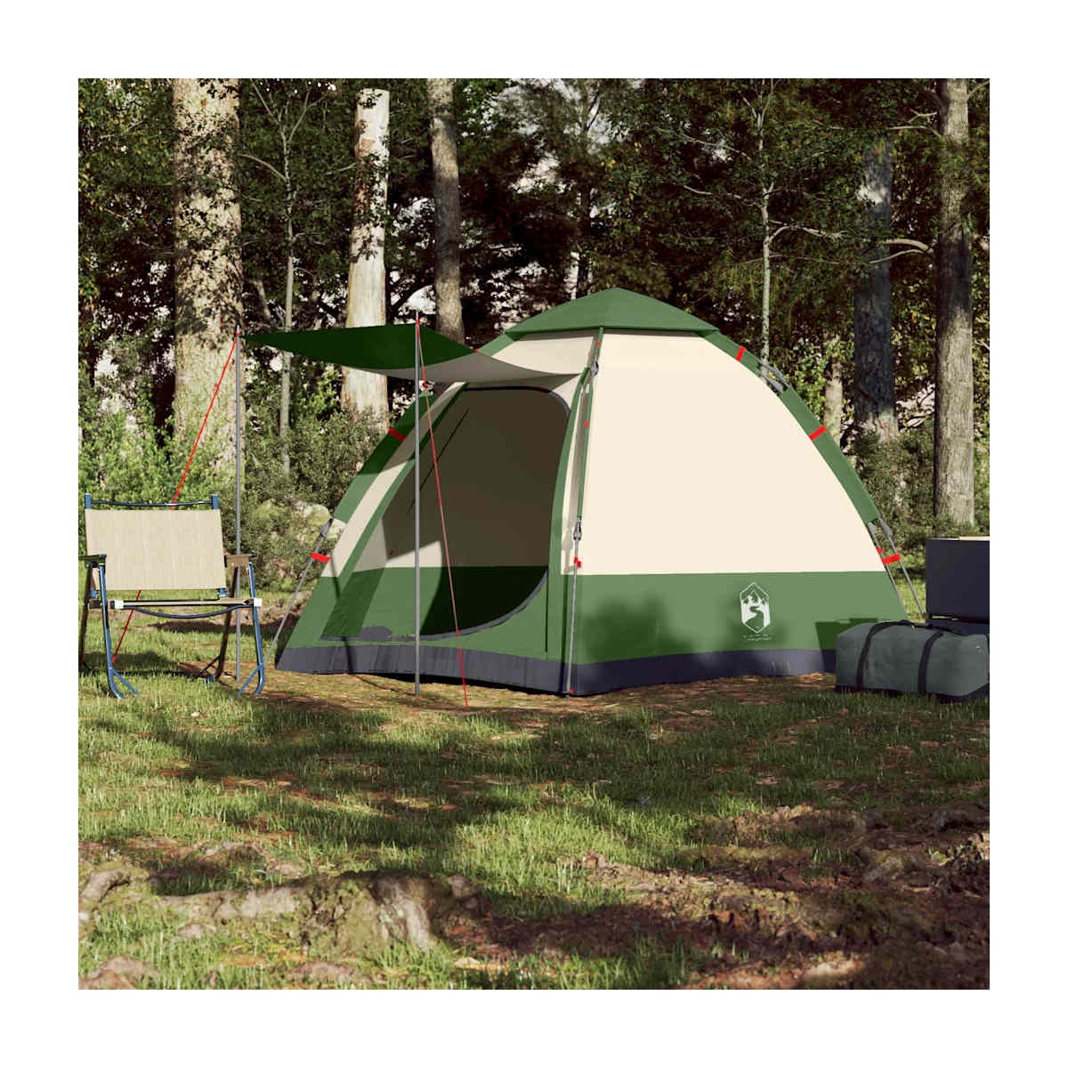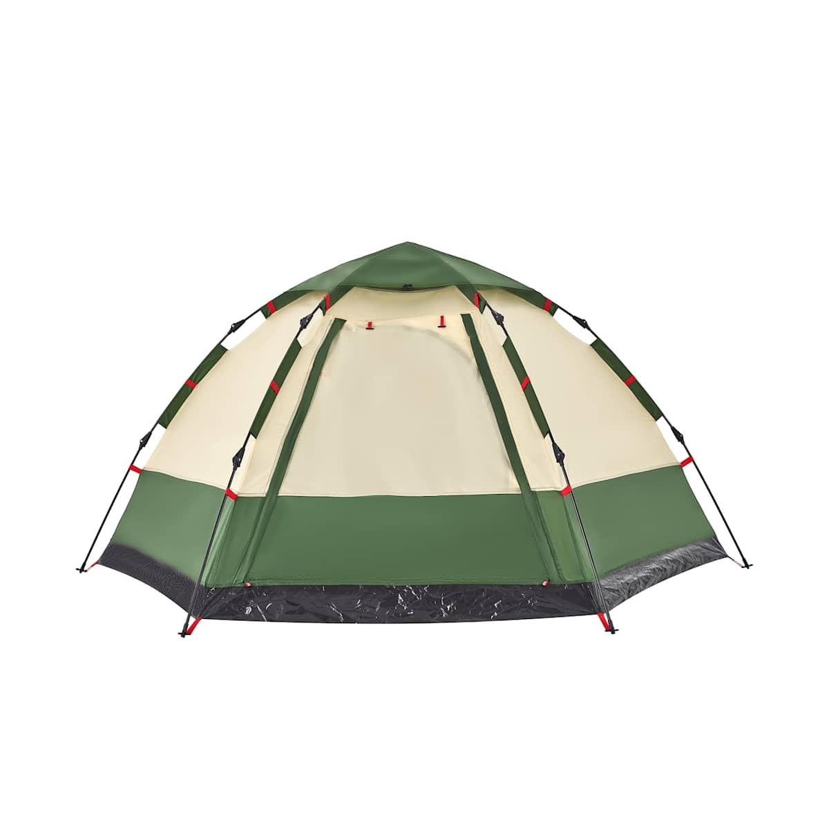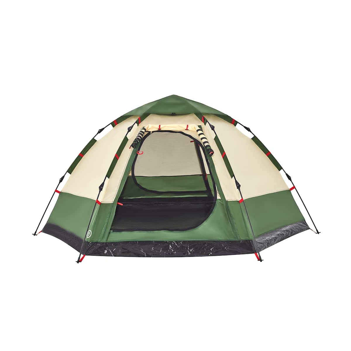Esta tienda de acampada, con un aspecto moderno, te protege de las inclemencias del tiempo, y te proporciona un lugar acogedor para tus aventuras en cualquier lugar. Diseño impermeable integral: Esta tienda de campaña, hecha de poliéster con revestimiento de PU, es impermeable y resistente al viento. Las costuras selladas evitan eficazmente la entrada de agua de lluvia, mientras que la lona de suelo resistente ayuda a mantener el interior seco y cómodo.Sistema de apertura rápida: Monta la tienda sin esfuerzo con el sistema de apertura rápida. Tumba la tienda, extiende las varillas premontadas hasta que encajen y ¡listo!Postes King incluidos para el toldo: Esta tienda de campaña incluye postes King que facilitan el apuntalamiento de la puerta de entrada, creando un toldo. Ahora puedes disfrutar del aire libre a la sombra.Acceso conveniente al cable eléctrico: El E-port te permite conectar fácilmente un cable de extensión de una fuente de alimentación externa a tu tienda.Ligera y portátil: El diseño plegable y ligero te permite empacar fácilmente la tienda y guardarla en la bolsa de transporte incluida para facilitar su transporte. Advertencia:Mantén todas las llamas y fuentes de calor alejadas del tejido de este producto.