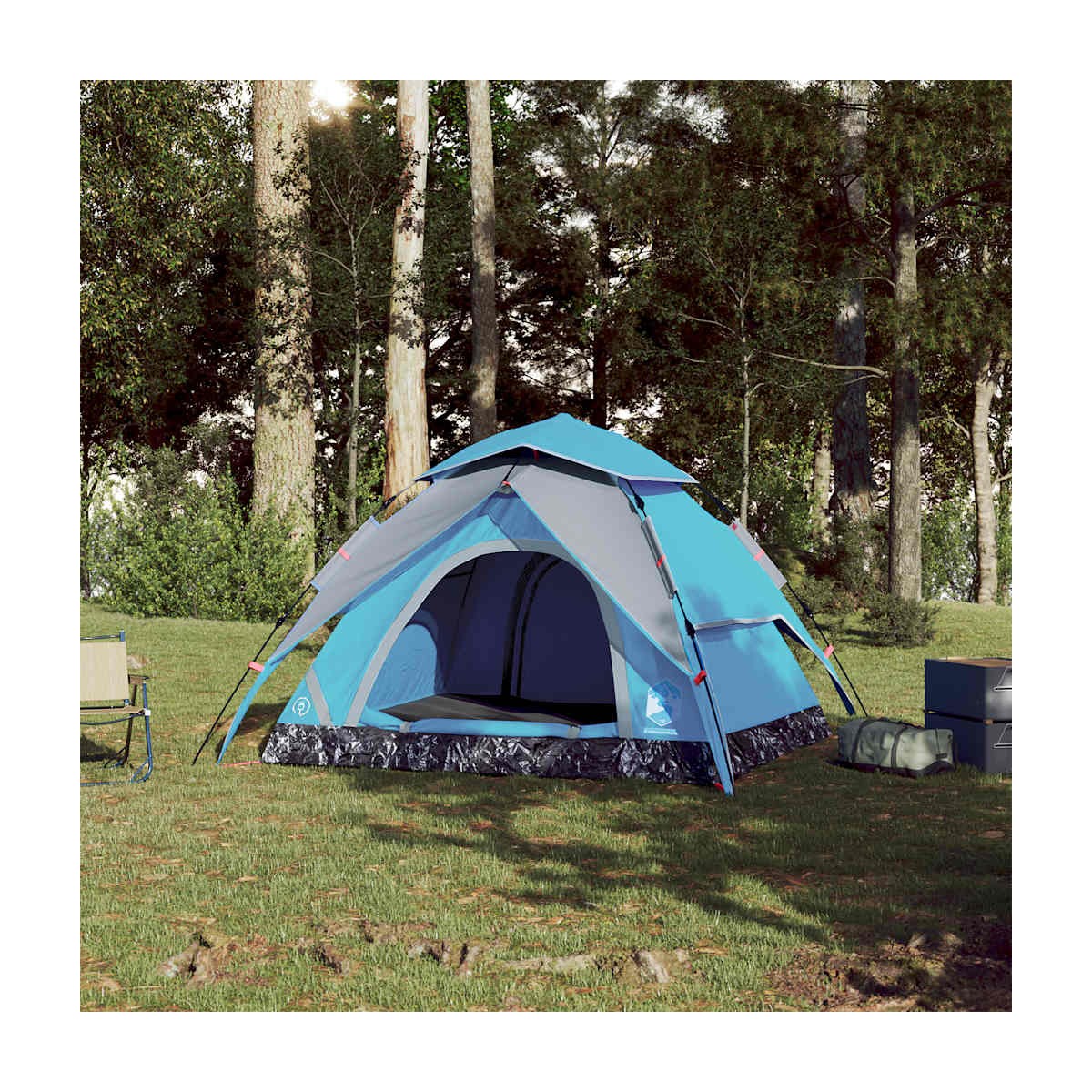 Esta tienda familiar, con un aspecto moderno, te protege de las inclemencias del tiempo, y te proporciona un lugar acogedor para tus aventuras en cualquier lugar. Diseño impermeable integral: Esta tienda de campaña, hecha de poliéster con revestimiento de PU, es impermeable y resistente al viento. Las costuras selladas evitan eficazmente la entrada de agua de lluvia, mientras que la lona de suelo resistente ayuda a mantener el interior seco y cómodo.Sistema de apertura rápida: Monta la tienda sin esfuerzo con el sistema de apertura rápida. Tumba la tienda, extiende las varillas premontadas hasta que encajen y ¡listo!Toldo desmontable: La lona impermeable desmontable se puede acoplar a la parte superior de la tienda para protegerla de la intemperie y la intimidad.Buena ventilación y protección contra mosquitos: Las paredes de malla no solo ofrecen una excelente ventilación, sino que también mantienen a raya a los insectos de forma eficaz, lo que garantiza una experiencia cómoda y libre de insectos para los usuarios.Acceso conveniente al cable eléctrico: El E-port te permite conectar fácilmente un cable de extensión de una fuente de alimentación externa a tu tienda. Advertencia:Mantén todas las llamas y fuentes de calor alejadas del tejido de este producto.