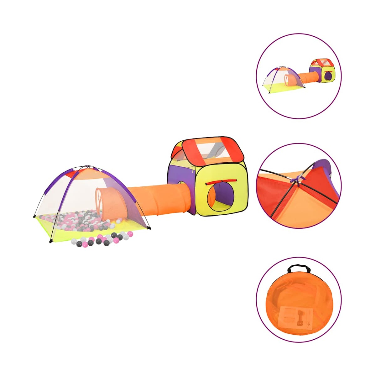 Esta tienda de juegos con bolas ofrecerá una gran diversión a tu querida criatura. ¡Tu pequeño disfrutará muchísimo con esta tienda de juegos! Poliéster duradero: El poliéster es un material sintético conocido por su resistencia a los rayos UV y su resistencia elástica. El poliéster es resistente al agua, por lo que resulta la elección perfecta para condiciones húmedas o lluviosas, y también se limpia fácilmente.Diseño 3 en 1: La tienda de juegos para niños incluye una tienda, una tienda casa y un túnel de juego, para que los niños puedan disfrutar de su tiempo jugando dentro durante horas. Pueden gatear y jugar con los juguetes dentro de esta casa de juegos y dejar volar su creación e imaginación.Bolas de colores: Las 250 bolas de colores incluidas sirven de juguetes para que los niños jueguen y dan un toque de color a sus juegos.Fácil de guardar: Esta tienda se puede guardar fácilmente en la bolsa de transporte incluida cuando no se utiliza. Nota:Cada producto viene con un manual de montaje en la caja para facilitar el montaje.
