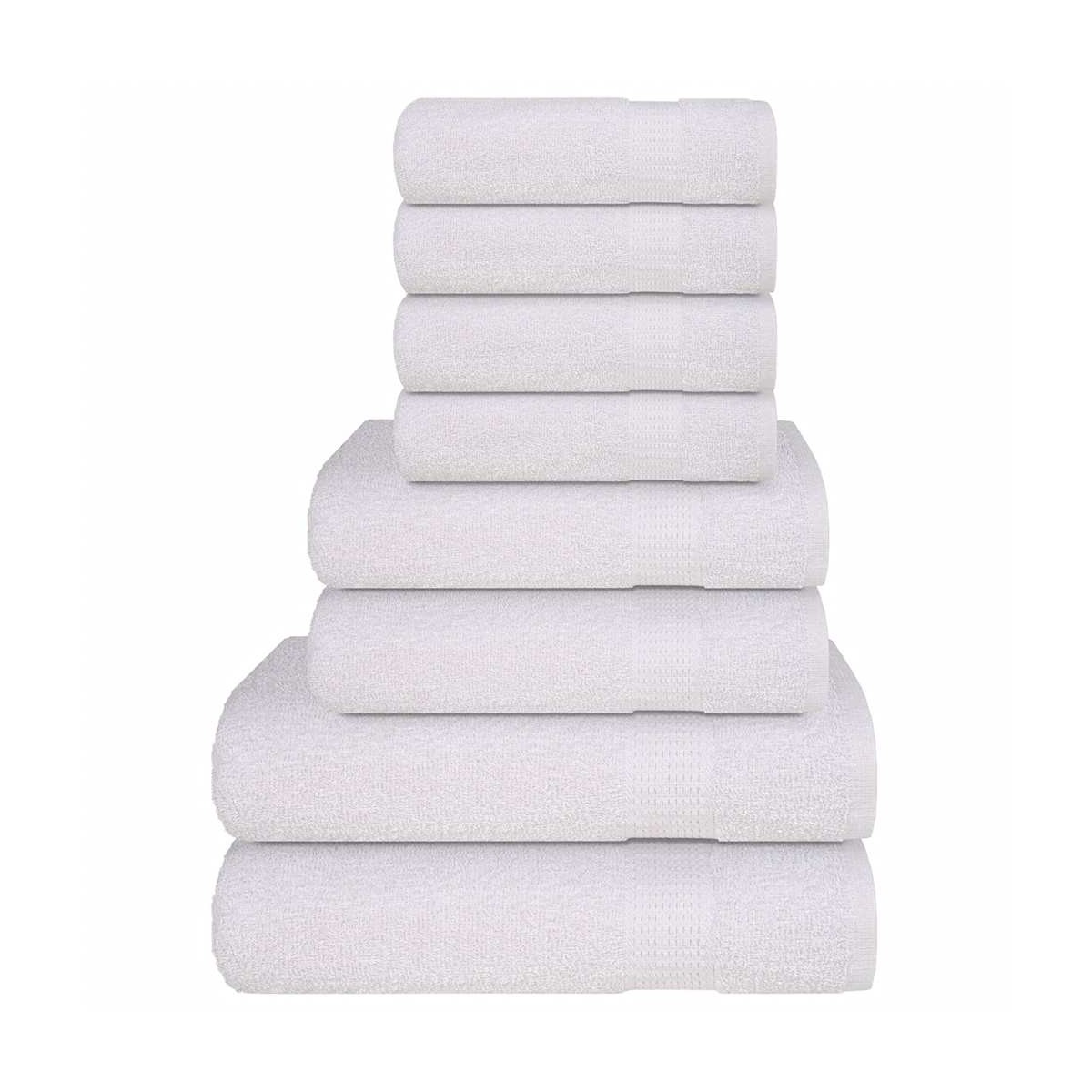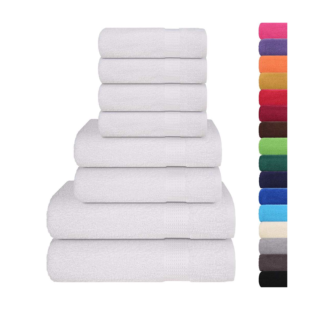 Este juego de toallas es ideal tanto para uso doméstico como comercial. Material suave y agradable para la piel: Estas toallas están hechas de algodón 100% hilado en anillos, que es suave, duradero y resistente a la decoloración. Cuentan con la certificación OEKO-TEX STANDARD 100 y han sido sometidas a pruebas de sustancias nocivas, lo que las hace fiables y de confianza.Absorbentes: El suave tejido de algodón hace que estas toallas de baño sean más absorbentes y absorban más agua durante la limpieza.Práctico lazo para colgar: Estas toallas vienen con un lazo para colgar adjunto para cada una, lo que facilita guardarlas en ganchos o toalleros.Lavables a máquina: Estas toallas de baño de algodón son perfectamente aptas para la lavadora y se pueden lavar fácilmente con agua tibia y jabón suave.Uso polivalente: Este juego de toallas de baño satisface diversas necesidades con su suavidad y durabilidad. Estas toallas son versátiles y fiables para tratamientos de belleza o tareas de limpieza diarias.