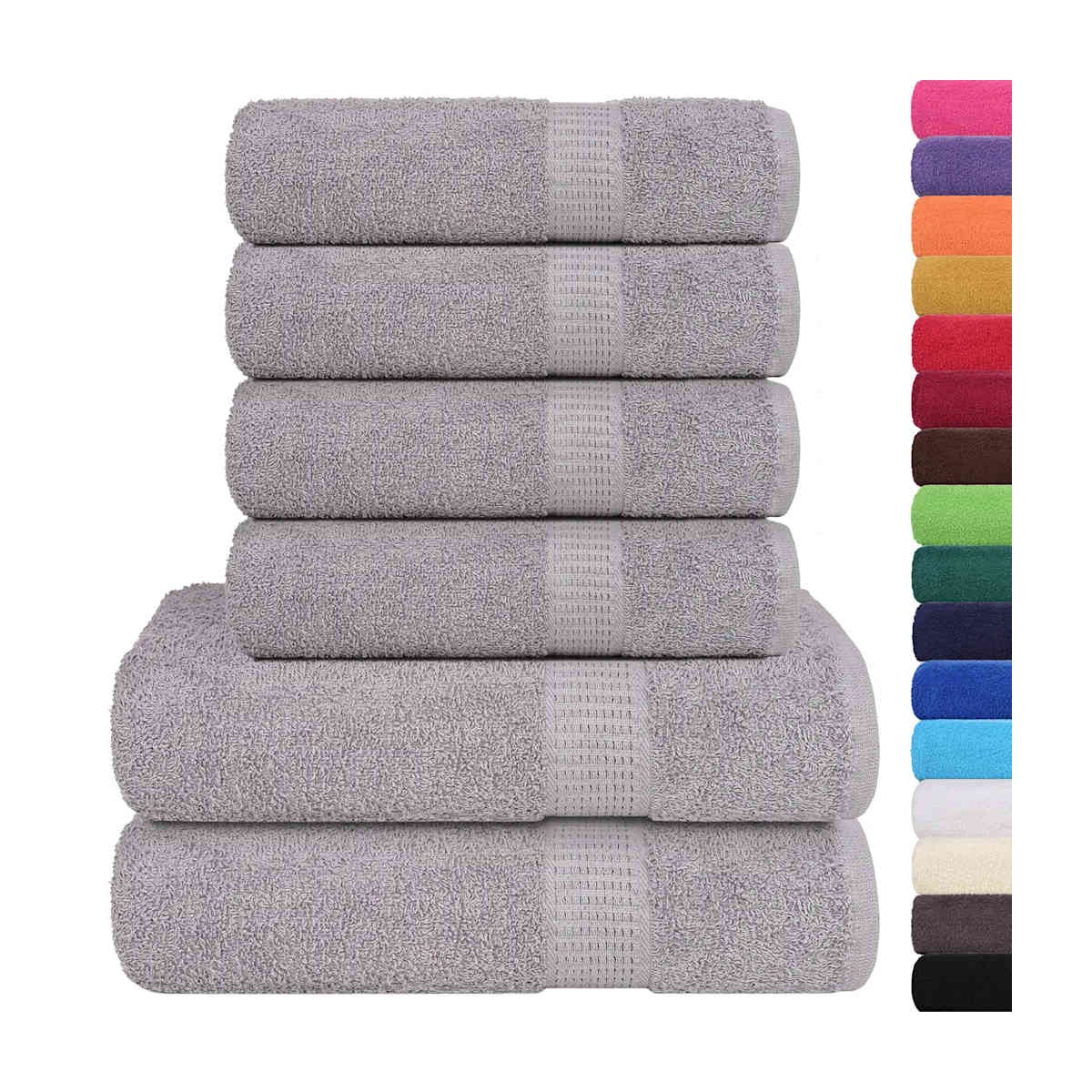 Este juego de toallas es ideal tanto para uso doméstico como comercial. Material suave y agradable para la piel: Estas toallas están hechas de algodón 100% hilado en anillos, que es suave, duradero y resistente a la decoloración. Cuentan con la certificación OEKO-TEX STANDARD 100 y han sido sometidas a pruebas de sustancias nocivas, lo que las hace fiables y de confianza.Absorbentes: El suave tejido de algodón hace que estas toallas de baño sean más absorbentes y absorban más agua durante la limpieza.Práctico lazo para colgar: Estas toallas vienen con un lazo para colgar adjunto para cada una, lo que facilita guardarlas en ganchos o toalleros.Lavables a máquina: Estas toallas de baño de algodón son perfectamente aptas para la lavadora y se pueden lavar fácilmente con agua tibia y jabón suave.Uso polivalente: Este juego de toallas de baño satisface diversas necesidades con su suavidad y durabilidad. Estas toallas son versátiles y fiables para tratamientos de belleza o tareas de limpieza diarias.
