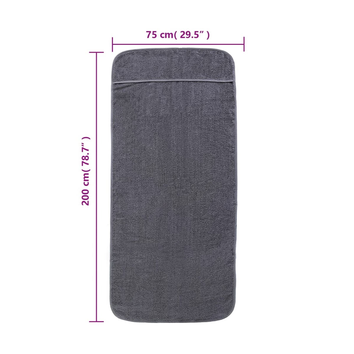 ¡Estas toallas de playa suaves y cómodas son una opción ideal para llevar a la piscina, a la playa o de vacaciones! Material suave: La toalla está hecha de un tejido suave, con una buena absorción de agua y con un secado rápido en poco tiempo. Además, este material también evita que la arena se pegue a la toalla de baño y facilita sacudir la arena de la toalla de playa.Antideslizante: La toalla de baño está equipada con una funda de 75 cm de ancho y 15 cm de largo que facilita la sujeción de la toalla a la tumbona y garantiza que se mantenga en su lugar.Ligera y portátil: La toalla de viaje es ligera y ocupa muy poco espacio cuando está plegada.Muchos usos: La toalla de playa es adecuada para las vacaciones, hacer surf, yoga, ir de crucero, caminar, ir de camping, eventos deportivos, etc. De vacaciones o no, siempre te resultará cómoda y práctica. Información útil:Las tumbonas no están incluidas en la entrega.