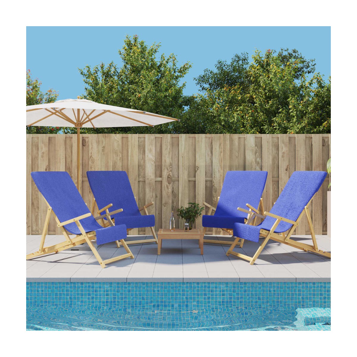 ¡Estas toallas de playa suaves y cómodas son una opción ideal para llevar a la piscina, a la playa o de vacaciones! Material suave: La toalla está hecha de un tejido suave, con una buena absorción de agua y con un secado rápido en poco tiempo. Además, este material también evita que la arena se pegue a la toalla de baño y facilita sacudir la arena de la toalla de playa.Antideslizante: La toalla de baño está equipada con una funda de 60 cm de ancho y 15 cm de largo que facilita la sujeción de la toalla a la silla de playa y garantiza que se mantenga en su lugar.Ligera y portátil: La toalla de viaje es ligera y ocupa muy poco espacio cuando está plegada.Muchos usos: La toalla de playa es adecuada para las vacaciones, hacer surf, yoga, ir de crucero, caminar, ir de camping, eventos deportivos, etc. De vacaciones o no, siempre te resultará cómoda y práctica. Información útil:Las sillas no están incluidas en la entrega.