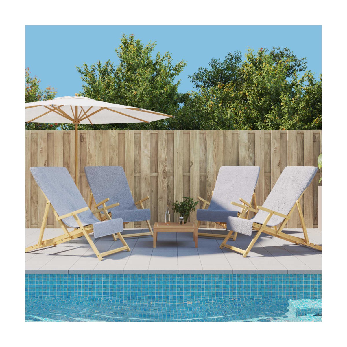 ¡Estas toallas de playa suaves y cómodas son una opción ideal para llevar a la piscina, a la playa o de vacaciones! Material suave: La toalla está hecha de un tejido suave, con una buena absorción de agua y con un secado rápido en poco tiempo. Además, este material también evita que la arena se pegue a la toalla de baño y facilita sacudir la arena de la toalla de playa.Antideslizante: La toalla de baño está equipada con una funda de 60 cm de ancho y 15 cm de largo que facilita la sujeción de la toalla a la silla de playa y garantiza que se mantenga en su lugar.Ligera y portátil: La toalla de viaje es ligera y ocupa muy poco espacio cuando está plegada.Muchos usos: La toalla de playa es adecuada para las vacaciones, hacer surf, yoga, ir de crucero, caminar, ir de camping, eventos deportivos, etc. De vacaciones o no, siempre te resultará cómoda y práctica. Información útil:Las sillas no están incluidas en la entrega.