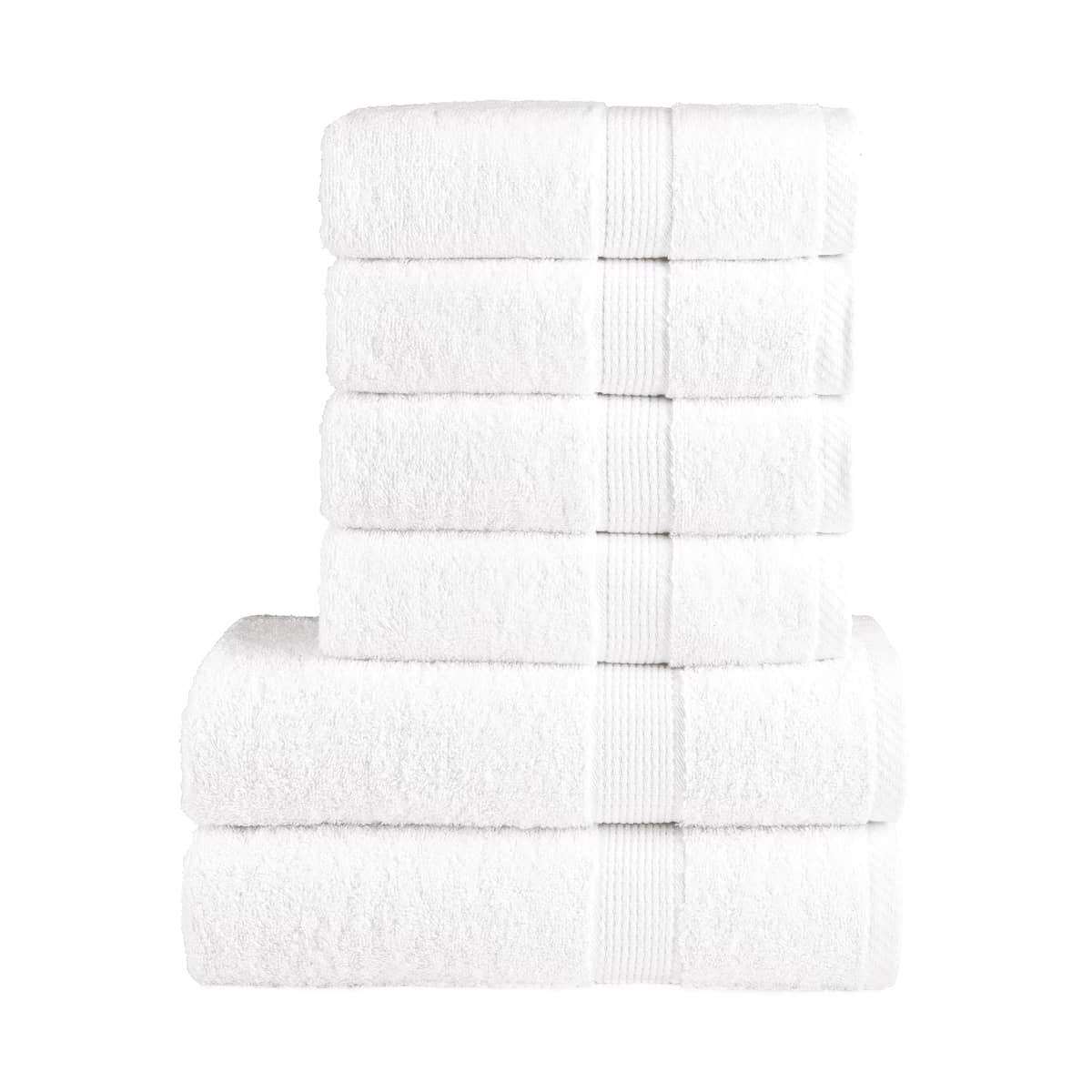 Este juego de toallas es ideal para la limpieza diaria en cualquier lugar y en cualquier momento. Material supersuave y de primera calidad: Estas toallas están hechas de algodón 100% hilado en anillos, que es suave, duradero y resistente a la decoloración. Cuentan con la certificación OEKO-TEX STANDARD 100 y han sido sometidas a pruebas de sustancias nocivas, lo que las hace fiables y de confianza.Absorbentes: El suave tejido de algodón hace que estas toallas de baño sean más absorbentes y absorban más agua durante la limpieza.Práctico lazo para colgar: Estas toallas vienen con un lazo para colgar adjunto para cada una, lo que facilita guardarlas en ganchos o toalleros.Lavables a máquina: Estas toallas de baño de algodón son perfectamente aptas para la lavadora y se pueden lavar fácilmente con agua tibia y jabón suave.Uso polivalente: Este juego de toallas de baño satisface diversas necesidades con su suavidad y durabilidad. Estas toallas son versátiles y fiables para tratamientos de belleza o tareas de limpieza diarias.