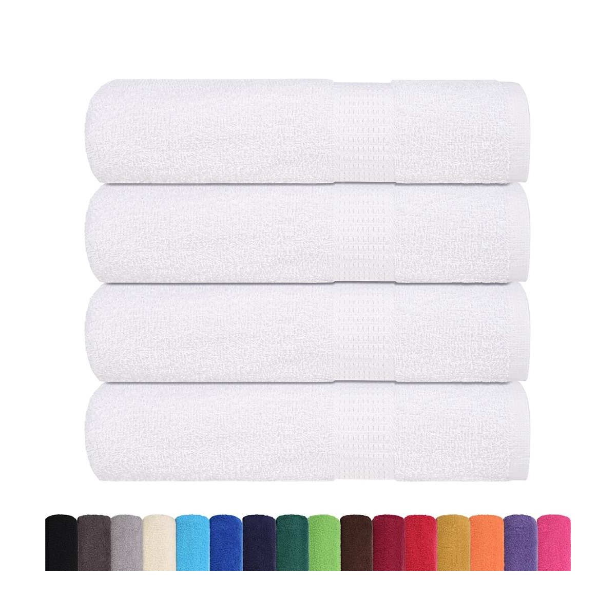 Estas toallas de baño son ideales tanto para uso doméstico como comercial. Material suave y agradable para la piel: Estas toallas están hechas de algodón 100% hilado en anillos, que es suave, duradero y resistente a la decoloración. Cuentan con la certificación OEKO-TEX STANDARD 100 y han sido sometidas a pruebas de sustancias nocivas, lo que las hace fiables y de confianza.Absorbentes: El suave tejido de algodón hace que estas toallas de baño sean más absorbentes y absorban más agua durante la limpieza.Práctico lazo para colgar: Estas toallas vienen con un lazo para colgar adjunto para cada una, lo que facilita guardarlas en ganchos o toalleros.Lavables a máquina: Estas toallas de baño de algodón son perfectamente aptas para la lavadora y se pueden lavar fácilmente con agua tibia y jabón suave.Uso multiusos: Estas toallas satisfacen diversas necesidades con su suavidad y durabilidad. Estas toallas son versátiles y fiables para tratamientos de belleza o tareas de limpieza diarias.