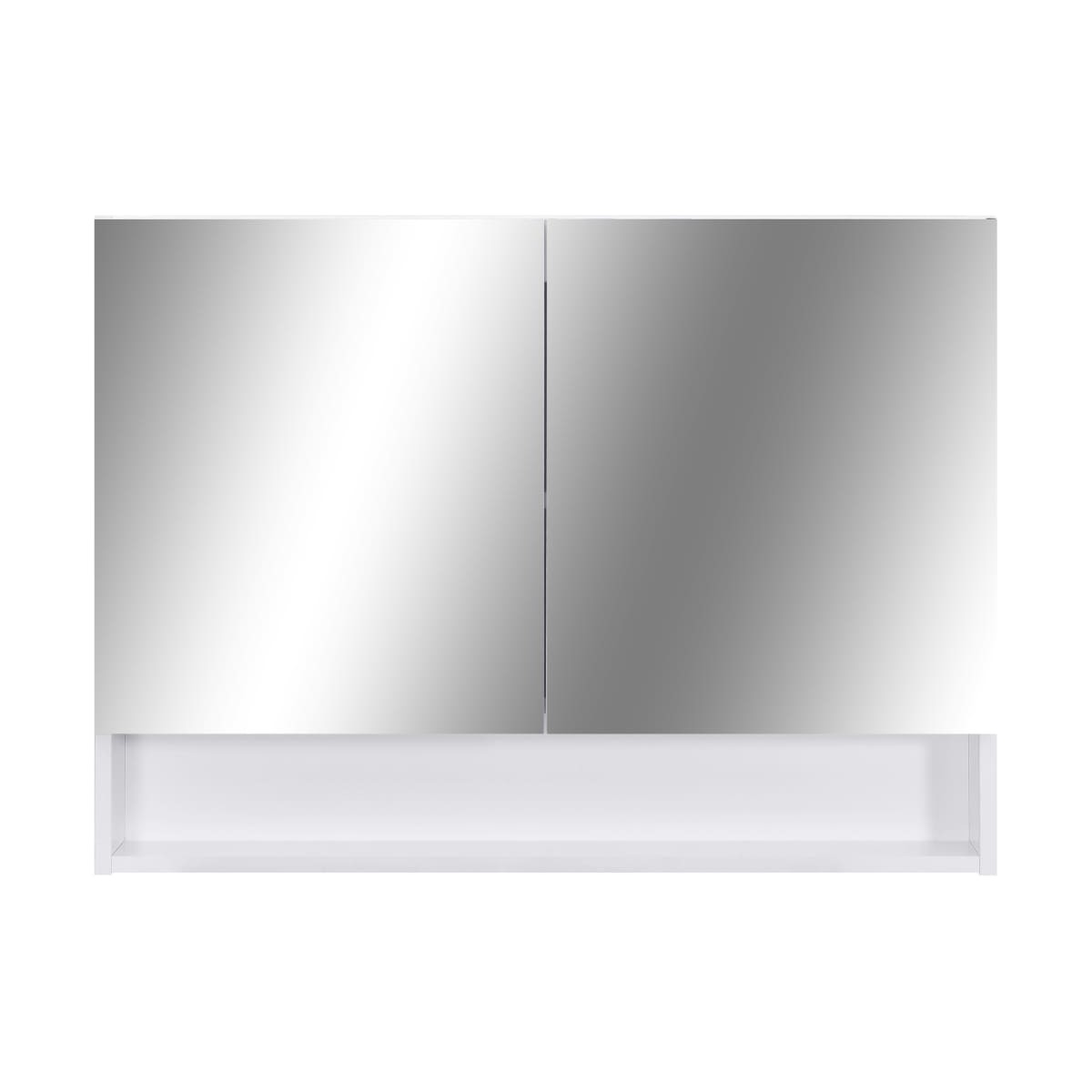 ¡Dale un aspecto estético y agradable al baño con este mueble con espejo de tocador LED! El mueble con espejo de pared con LED agrega un toque de estilo contemporáneo y una luz suave e iluminadora a cualquier estancia. El armario está hecho de tablero MDF de calidad, con la superficie de melamina, lo que garantiza un uso a largo plazo. Puedes encender y apagar la luz fácilmente con el botón. Con una tira de LED de bajo consumo, podrás maquillarte, asearte y cuidarte la piel con la luz más auténtica. Las 2 puertas y los 3 estantes del interior del armario ofrecen un amplio espacio de almacenaje. Caben cómodamente los artículos esenciales de aseo y baño, como jabones, champú, pasta de dientes, etc. Dispone de un tabique móvil en el centro del armario, para que lo coloques según lo que necesites. Además, se limpia fácilmente con un paño húmedo. Elegante y funcional, ¡este mueble hará que la decoración de la estancia sea original y excepcional! Nota:El producto tiene un conector USB, pero no se incluye la fuente de alimentación USB de 5 V certificada.