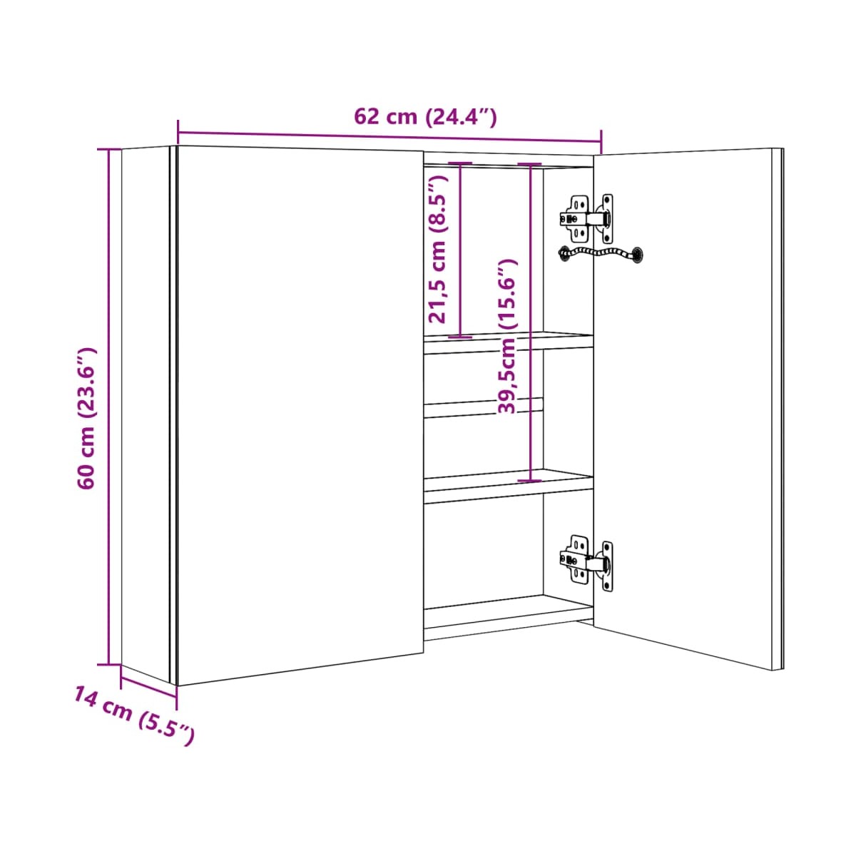 ¡Introduce un look bonito en tu baño con nuestro armario de tocador con espejo LED! ¡Nuestro armario con espejo de pared con LED agrega un toque de estilo moderno y una luz suave e iluminadora a cualquier habitación! Está hecho de tablero MDF de calidad con acabado de melamina, lo que garantiza el uso a largo plazo. Con las tiras de luz LED de doble eficiencia energética, puede verse con la luz más real para la aplicación de maquillaje, el aseo y el cuidado de la piel, y puede iluminar su habitación, su rostro y su sonrisa. En el interior incluye 3 estantes, que brindan un amplio espacio de almacenamiento en el armario para todos tus artículos de tocador y accesorios de belleza. Puedes encender/apagar fácilmente la luz con el botón inferior. ¡Elegante y funcional, este armario seguramente hará que el diseño de tu habitación sea originalmente excepcional! El mueble es fácil de instalar en la pared. Nota:El producto tiene un conector USB, pero no se incluye la fuente de alimentación USB de 5 V certificada.