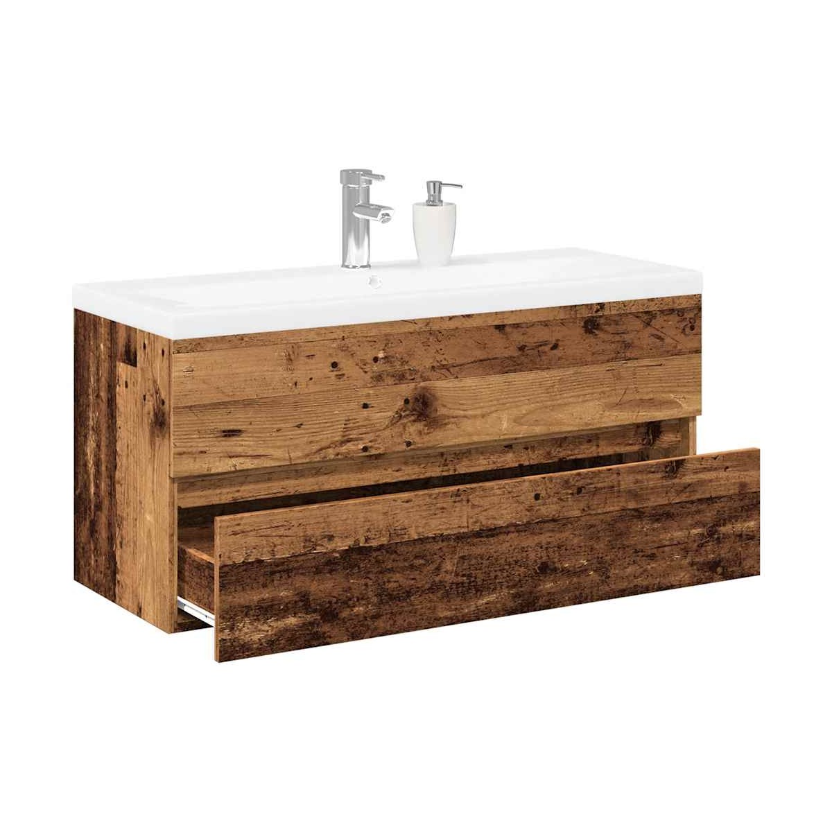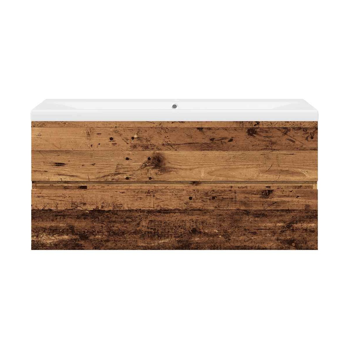 Este elegante mueble de baño con lavabo integrado y amplio espacio de almacenaje es un aporte excelente para el cuarto de baño, ¡ya que le dará un aspecto ordenado y llamativo! Material robusto: El armario para lavabo está hecho de madera contrachapada, que tiene una calidad excepcional, con una superficie lisa y también cuenta con fuerza, estabilidad y resistencia a la humedad.Amplio almacenaje: El armario de baño posee un cajón, que ofrece un amplio espacio de almacenamiento para guardar artículos en el baño.Diseño práctico: La parte superior de este armario de baño es ideal para colocar el lavamanos.Función de montaje en la pared: El armario del baño puede montarse en la pared para añadir espacio de almacenamiento adicional. Así podrás aprovechar al máximo el espacio del suelo y mantener la zona limpia.Rebosadero: También está equipado con un agujero de desagüe para que fluya el agua cuando se llena demasiado. Información útil:Los tornillos y los tacos para el interior de la pared no están incluidos. Busca y utiliza tornillos y tacos adecuados para tus paredes. Si no lo tienes claro, busca asesoramiento profesional. Lee y sigue cada paso de las instrucciones cuidadosamente.El grifo no está incluido en la entrega.
