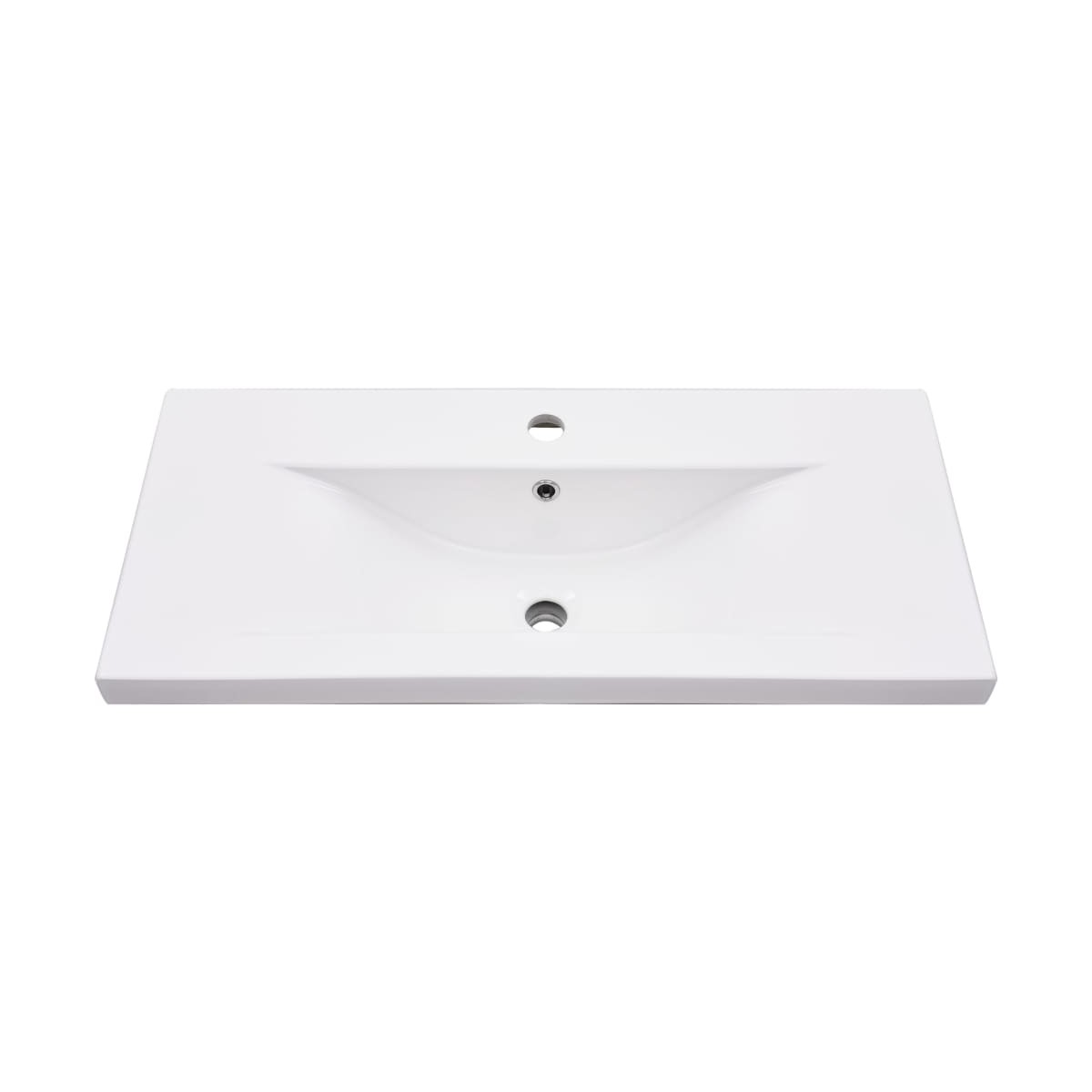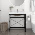 Esta estructura de lavabo de baño con seno integrado es la combinación perfecta para tu baño o lavabo con un aspecto limpio y ordenado. El soporte de lavado está hecho de hierro con recubrimiento en polvo, lo que lo hace estable y duradero. Este soporte de lavabo facilita el acceso a las toallas y cestas y crea un espacio más amplio que el almacenamiento cerrado. Hecho de cerámica, el lavabo no sólo puede servir como recipiente de uso diario, sino también como adorno en tu hogar. Gracias a su diseño vanguardista y moderno, este lavabo se adaptará sin duda a cualquier decoración. También está equipado con un agujero de desbordamiento para que fluya el agua cuando se llena demasiado. Su superficie acristalada aporta un diseño moderno y elegante a la vez. Además, la estructura y el lavabo son fáciles de limpiar con un paño húmedo. Nota: El grifo y el desagüe no están incluidos en la entrega.