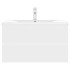 Este armario fregadero con lavabo incorporado es una combinación perfecta para tu baño o aseo con un aspecto llamativo y ordenado. El armario es de madera contrachapada, lo que lo hace robusto y estable. El armario tiene 1 cajón, que ofrece un amplio espacio de almacenamiento para guardar artículos en tu baño. Encaja perfectamente debajo del fregadero y hace que el almacenamiento en el baño sea bastante práctico. Hecho de cerámica, el lavabo no solo puede servir como recipiente para el uso diario, sino también como adorno en tu casa. Gracias a su diseño vanguardista y moderno, este lavabo definitivamente se adaptará a cualquier decoración. Un rebosadero también está equipado para hacer salir el agua cuando se llena demasiado. Su superficie acristalada aporta un diseño moderno pero elegante. Además, el armario y el lavabo son fáciles de limpiar con un paño húmedo. Nota: El grifo y el escurridor de empuje con función de rebosadero están incluidos en el suministro. El grifo es de agua fría y caliente, y si necesitas agua caliente, hay que conectar un calentador de agua.