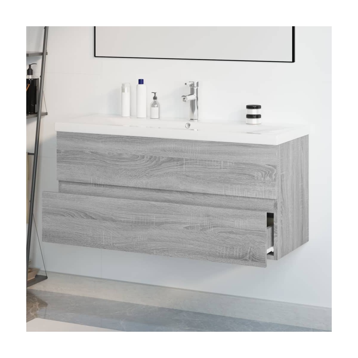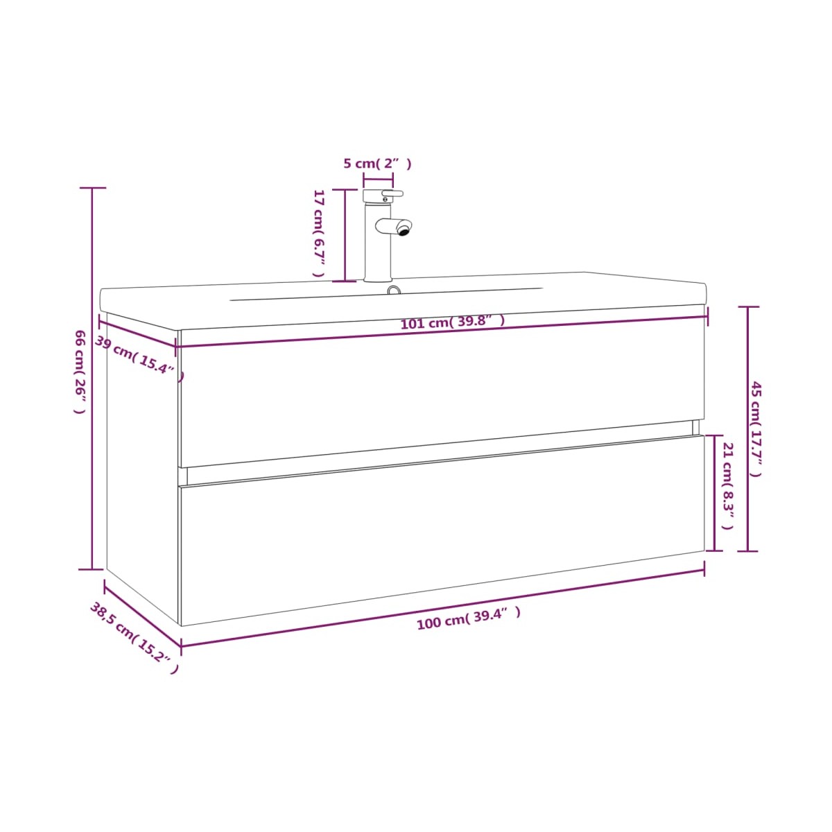 Este elegante mueble de baño con lavabo integrado y amplio espacio de almacenaje es un aporte excelente para el cuarto de baño, ¡ya que le dará un aspecto ordenado y llamativo! Material robusto: El armario para lavabo está hecho de madera contrachapada, que tiene una calidad excepcional, con una superficie lisa y también cuenta con fuerza, estabilidad y resistencia a la humedad.Amplio almacenaje: El armario de baño posee un cajón, que ofrece un amplio espacio de almacenamiento para guardar artículos en el baño.Diseño práctico: La parte superior de este armario de baño es ideal para colocar el lavamanos.Función de montaje en la pared: El armario del baño puede montarse en la pared para añadir espacio de almacenamiento adicional. Así podrás aprovechar al máximo el espacio del suelo y mantener la zona limpia.Rebosadero: También está equipado con un agujero de desagüe para que fluya el agua cuando se llena demasiado. Nota:Los tornillos y los tacos para el interior de la pared no están incluidos. Busca y utiliza tornillos y tacos adecuados para tus paredes. Si no lo tienes claro, busca asesoramiento profesional. Lee y sigue cada paso de las instrucciones cuidadosamente.El grifo y el escurridor de empuje con función de rebosadero están incluidos.Cada producto viene con un manual de montaje en la caja para facilitar el montaje.El grifo es de agua fría y caliente, y si necesitas agua caliente, hay que conectar un calentador de agua.