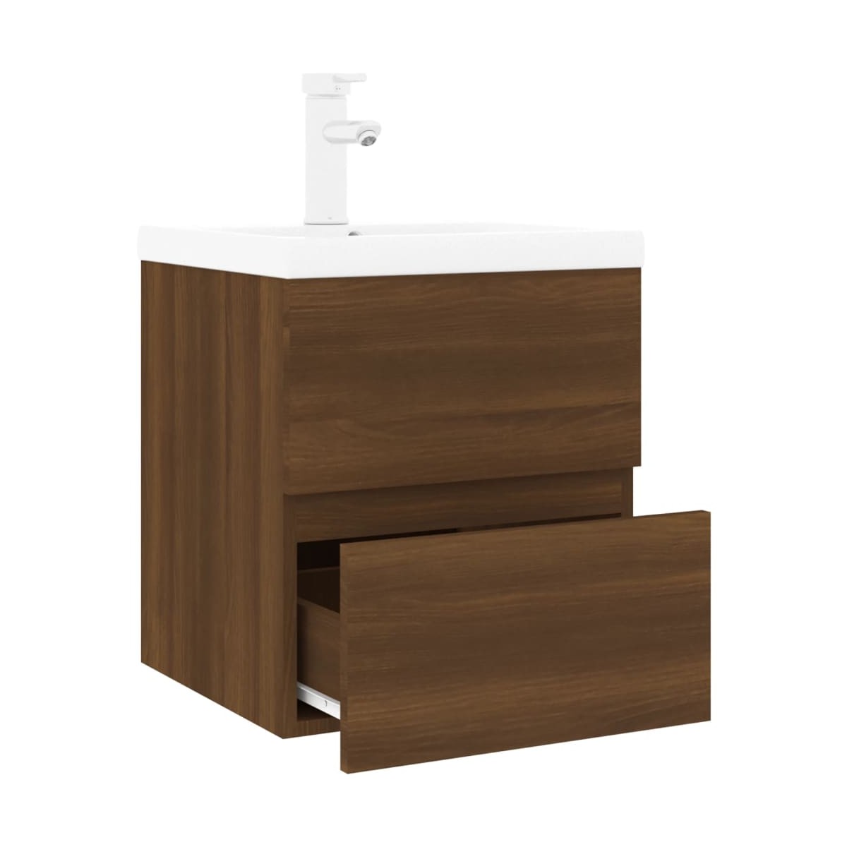 Este elegante mueble de baño con lavabo integrado y amplio espacio de almacenaje es un aporte excelente para el cuarto de baño, ¡ya que le dará un aspecto ordenado y llamativo! Material robusto: El armario para lavabo está hecho de madera contrachapada, que tiene una calidad excepcional, con una superficie lisa y también cuenta con fuerza, estabilidad y resistencia a la humedad.Amplio almacenaje: El armario de baño posee un cajón, que ofrece un amplio espacio de almacenamiento para guardar artículos en el baño.Diseño práctico: La parte superior de este armario de baño es ideal para colocar el lavamanos.Función de montaje en la pared: El armario del baño puede montarse en la pared para añadir espacio de almacenamiento adicional. Así podrás aprovechar al máximo el espacio del suelo y mantener la zona limpia.Rebosadero: También está equipado con un agujero de desagüe para que fluya el agua cuando se llena demasiado. Nota:Los tornillos y los tacos para el interior de la pared no están incluidos. Busca y utiliza tornillos y tacos adecuados para tus paredes. Si no lo tienes claro, busca asesoramiento profesional. Lee y sigue cada paso de las instrucciones cuidadosamente.El grifo y el escurridor de empuje con función de rebosadero están incluidos.Cada producto viene con un manual de montaje en la caja para facilitar el montaje.El grifo es de agua fría y caliente, y si necesitas agua caliente, hay que conectar un calentador de agua.
