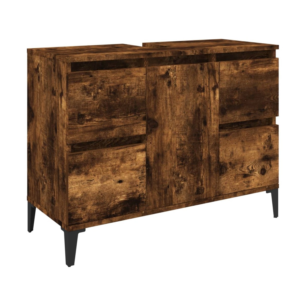 Este armario para lavabo está pensado para ser un gran aporte para tu cuarto de baño, ¡le dará un aspecto ordenado y llamativo! Material duradero: La madera contrachapada tiene una calidad excepcional, con una superficie lisa y también cuenta con fuerza, estabilidad y resistencia a la humedad.Amplio espacio de almacenaje: El mueble de baño tiene 4 cajones y 1 compartimento con puerta, por lo que ofrece diversas opciones de almacenamiento y un plus de espacio para guardar objetos en el baño. La parte superior del armario de baño es ideal para colocar el lavamanos.Patas de metal: Las patas metálicas añaden un estilo moderno y tranquilo a la casa a la vez que garantizan la estabilidad.Superficie fácil de limpiar: El mueble de baño es fácil de limpiar con un paño húmedo. Advertencia:Para evitar que vuelque, este producto debe usarse con el dispositivo de fijación a la pared incluido. Información útil:Para facilitar al máximo el montaje, cada producto se entrega con un manual.El lavabo no está incluido.