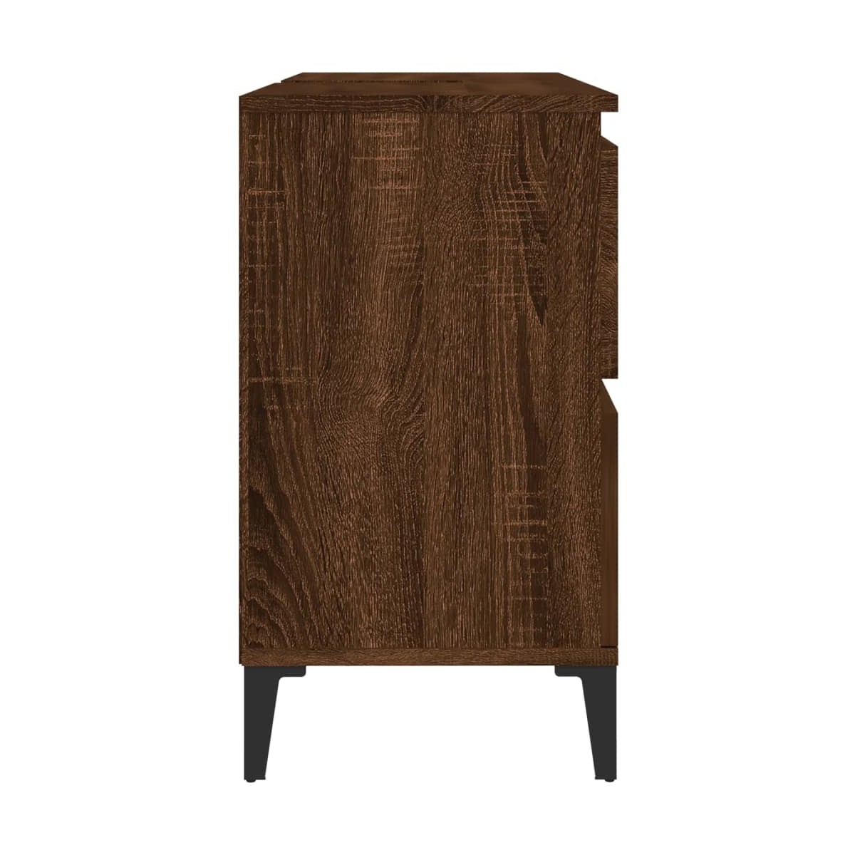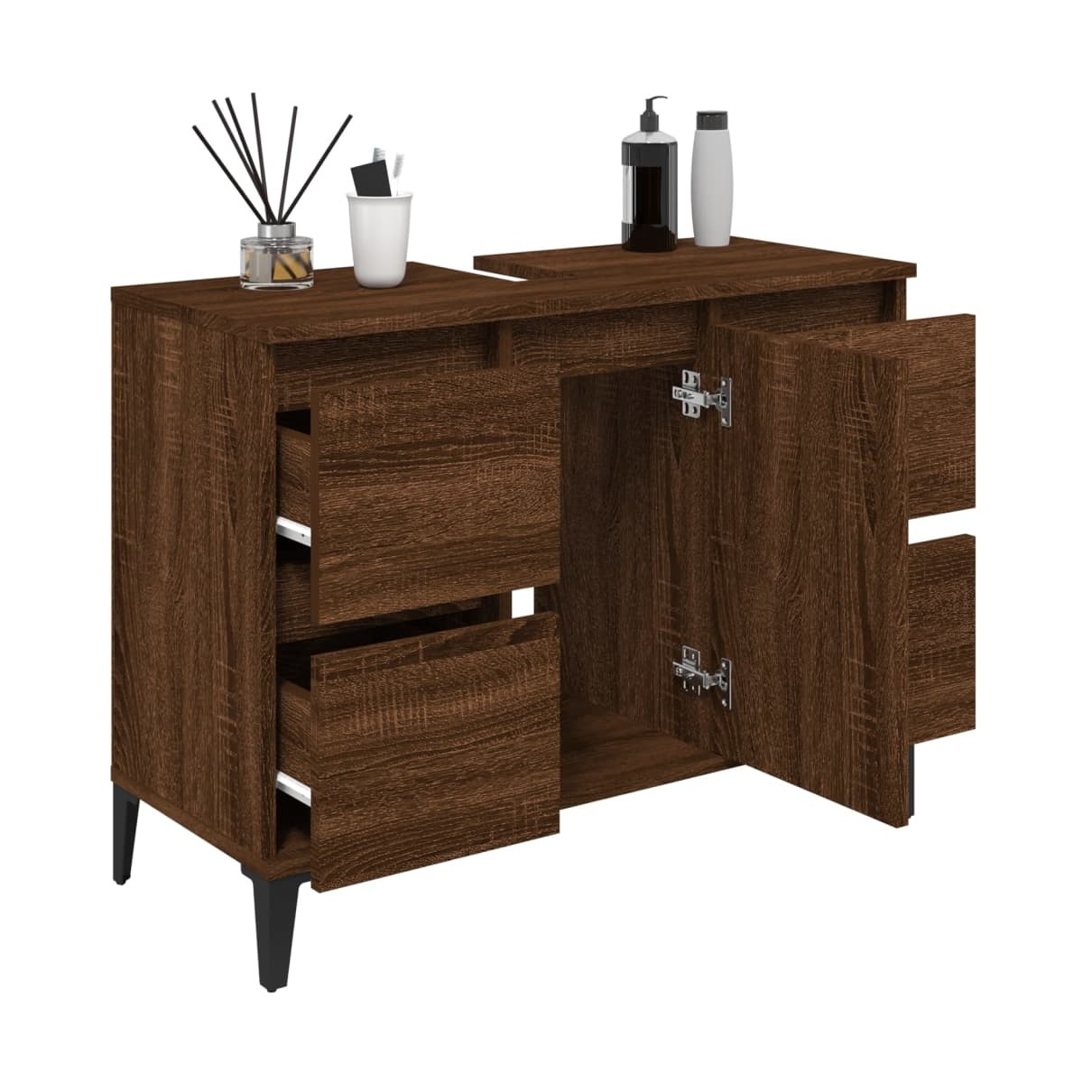 Este armario para lavabo está pensado para ser un gran aporte para tu cuarto de baño, ¡le dará un aspecto ordenado y llamativo! Material duradero: La madera contrachapada tiene una calidad excepcional, con una superficie lisa y también cuenta con fuerza, estabilidad y resistencia a la humedad.Amplio espacio de almacenaje: El mueble de baño tiene 4 cajones y 1 compartimento con puerta, por lo que ofrece diversas opciones de almacenamiento y un plus de espacio para guardar objetos en el baño. La parte superior del armario de baño es ideal para colocar el lavamanos.Patas de metal: Las patas metálicas añaden un estilo moderno y tranquilo a la casa a la vez que garantizan la estabilidad.Superficie fácil de limpiar: El mueble de baño es fácil de limpiar con un paño húmedo. Advertencia:Para evitar que vuelque, este producto debe usarse con el dispositivo de fijación a la pared incluido. Información útil:Para facilitar al máximo el montaje, cada producto se entrega con un manual.El lavabo no está incluido.