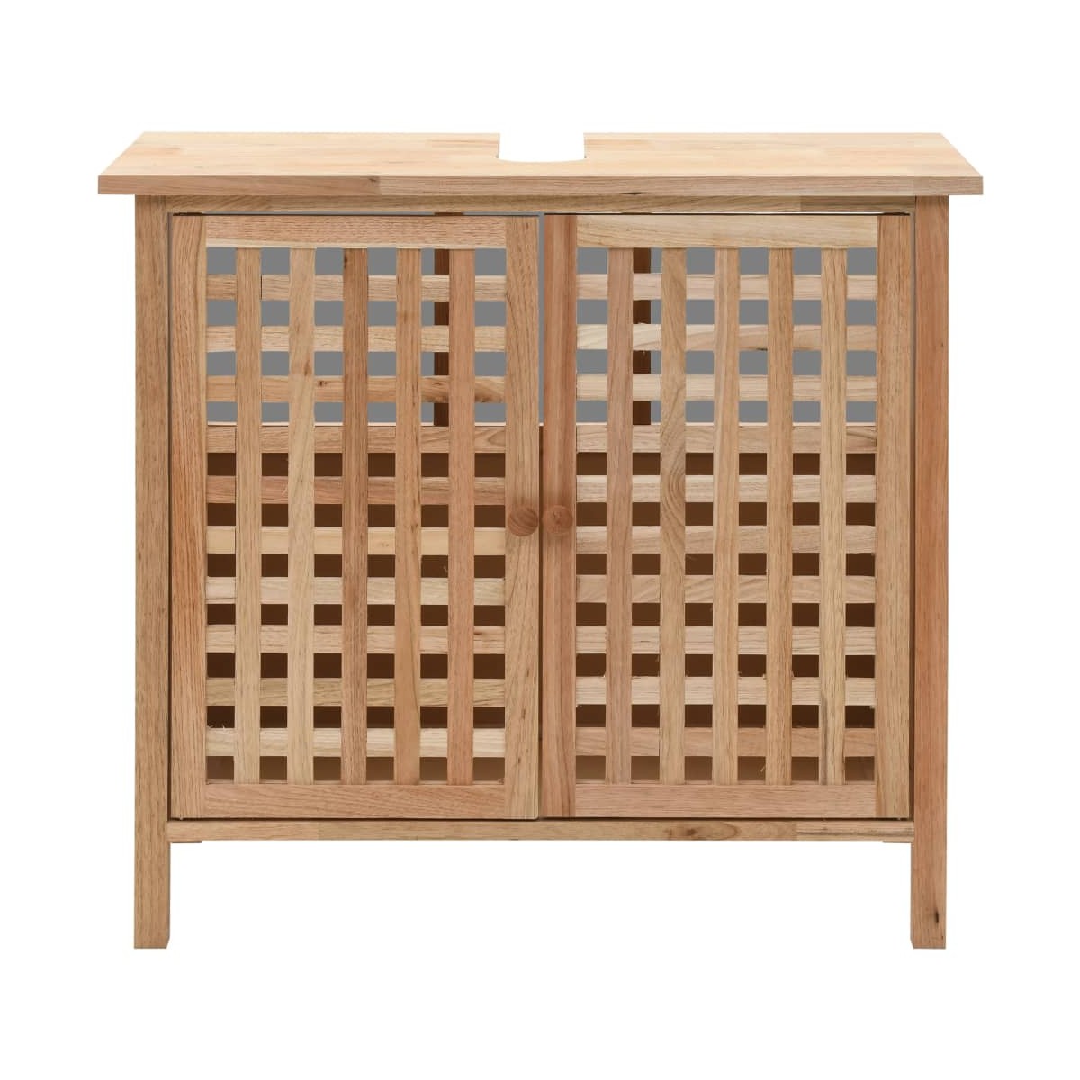 El mueble de lavabo, hecho de madera maciza de nogal, será un aporte llamativo para tu baño. El armario de almacenaje para baño tiene dos puertas con un diseño de enrejado, lo que ayuda a mantener tus artículos ventilados, pero también agrega un encanto elegante. El armario de almacenaje de madera es estable, duradero y añadirá un toque de estilo natural a tu hogar. Este mueble de baño se adapta perfectamente al lavabo y ofrece una solución de almacenamiento ideal. El mueble de lavabo es fácil de montar. Nota: La madera es un producto natural, por lo que los colores pueden variar de un lote a otro; la entrega es aleatoria.
