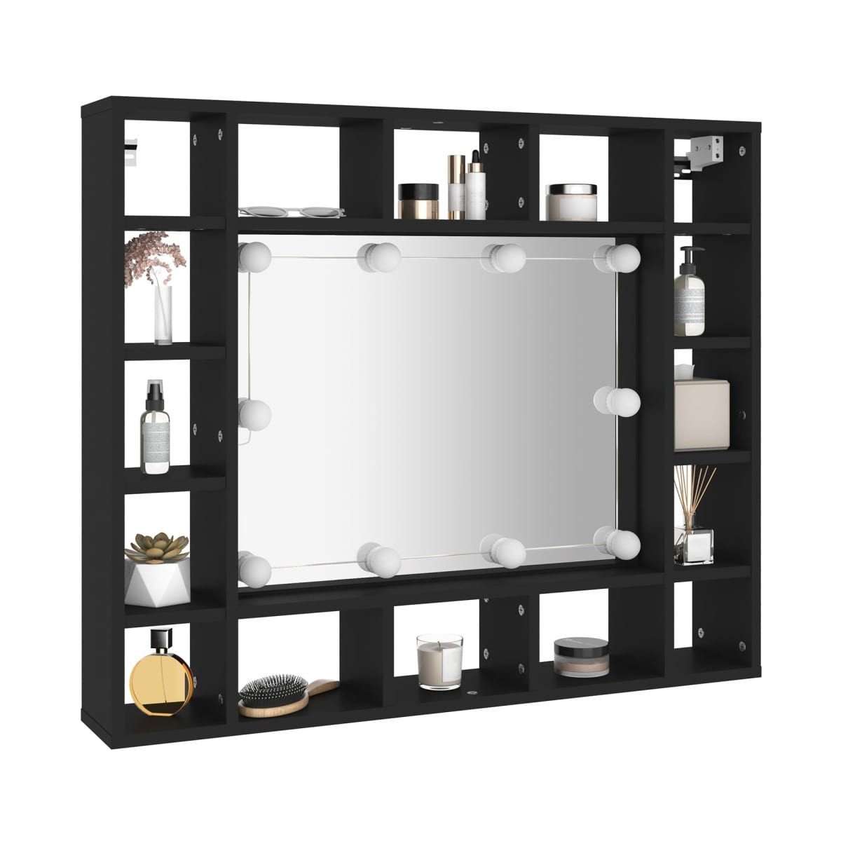 ¡Organiza tu maquillaje con este moderno mueble con espejo y LED! Material duradero: La madera de ingeniería tiene una calidad excepcional, con una superficie lisa y también cuenta con fuerza, estabilidad y resistencia a la humedad.Luces LED: Este mueble espejo está equipado con luces LED alrededor del espejo y puedes cambiar los modos de luz de blanco cálido a blanco frío usando el control manual.Fácil de montar: Este mueble de maquillaje con espejo viene con soportes para un fácil montaje en la pared.Amplio espacio de almacenamiento: Este armario con espejo tiene múltiples compartimentos que brindan mucho espacio para almacenar y mantener bien organizados tus artículos básicos de maquillaje. Información útil:Los tornillos y los tacos para el interior de la pared no están incluidos. Recomendamos encontrar y utilizar tornillos y tacos adecuados específicamente para las paredes. Si no estás seguro, puedes consultar con un profesional. Lee y sigue cada paso de las instrucciones.El producto tiene un conector USB, pero no se incluye la fuente de alimentación USB de 5 V certificada.