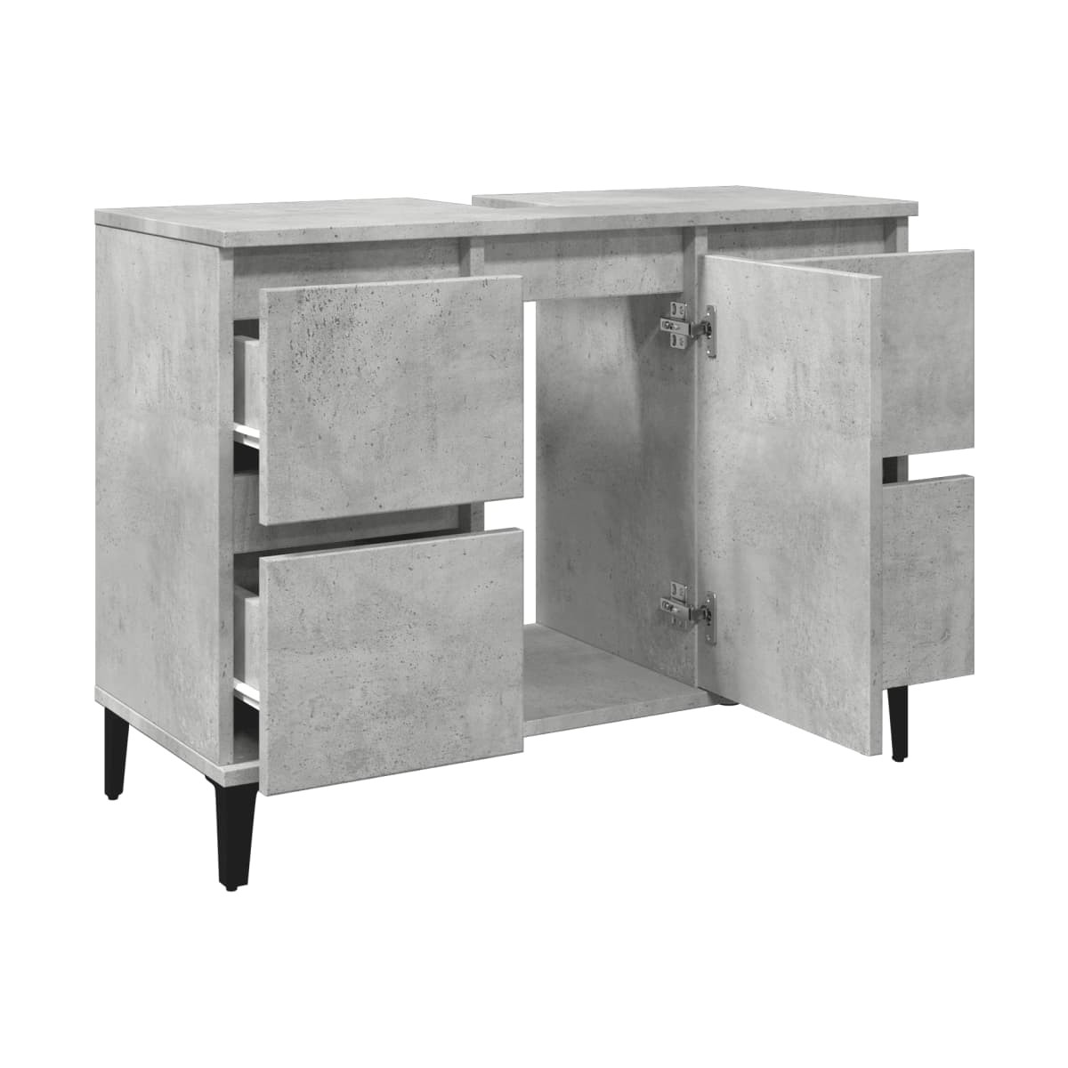 Este armario para lavabo está pensado para ser un gran aporte para tu cuarto de baño, ¡le dará un aspecto ordenado y llamativo! Material duradero: La madera contrachapada tiene una calidad excepcional, con una superficie lisa y también cuenta con fuerza, estabilidad y resistencia a la humedad.Amplio espacio de almacenaje: El mueble de baño tiene 4 cajones y 1 compartimento con puerta, por lo que ofrece diversas opciones de almacenamiento y un plus de espacio para guardar objetos en el baño. La parte superior del armario de baño es ideal para colocar el lavamanos.Patas de metal: Las patas metálicas añaden un estilo moderno y tranquilo a la casa a la vez que garantizan la estabilidad.Superficie fácil de limpiar: El mueble de baño es fácil de limpiar con un paño húmedo. Advertencia:Para evitar que vuelque, este producto debe usarse con el dispositivo de fijación a la pared incluido. Información útil:Para facilitar al máximo el montaje, cada producto se entrega con un manual.El lavabo no está incluido.