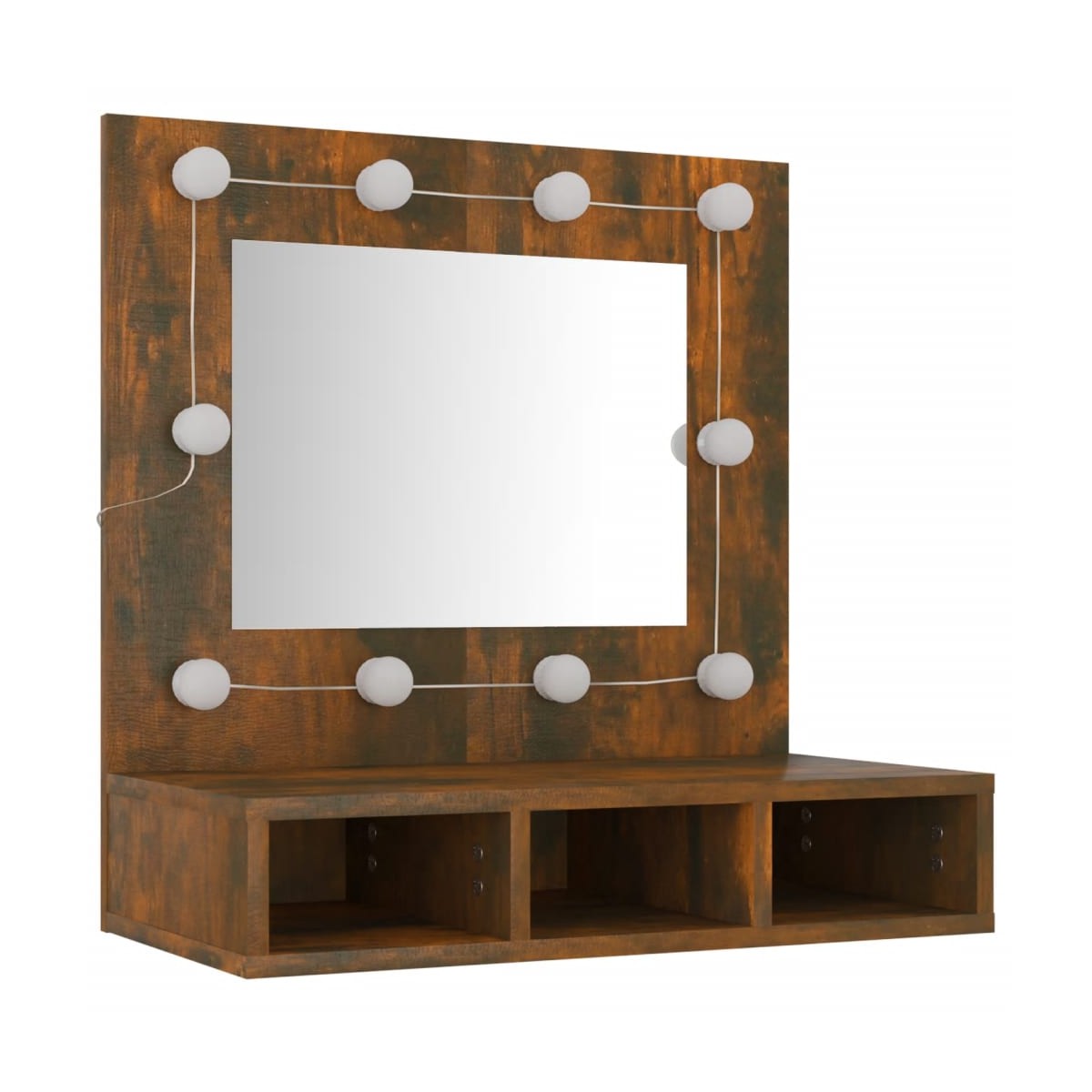 ¡Añade un toque agradable al aspecto de tu habitación con este mueble con espejo y LED! Material duradero: La madera contrachapada tiene una calidad excepcional, con una superficie lisa y también cuenta con fuerza, estabilidad y resistencia a la humedad.Luces LED: El armario con espejo tiene bombillas LED con USB, que se pueden cambiar fácilmente de modo cálido a blanco frío. Las bombillas LED integradas alrededor del espejo iluminan tu belleza.Modos de instalación flexibles: Este armario con espejo y LED se puede colocar encima de la cómoda de forma estable o montarlo sobre la pared para no ocupar espacio del suelo.Espacio de almacenaje suficiente: Gracias a la disposición de los estantes abiertos, tienes espacio y almacenaje de sobra para todos tus cosméticos. Nota:Cada producto viene con un manual de montaje en la caja para facilitar el montaje.Los tornillos y los tacos para el interior de la pared no están incluidos. Busca y utiliza tornillos y tacos adecuados para tus paredes. Si no lo tienes claro, busca asesoramiento profesional. Lee y sigue cada paso de las instrucciones cuidadosamente.