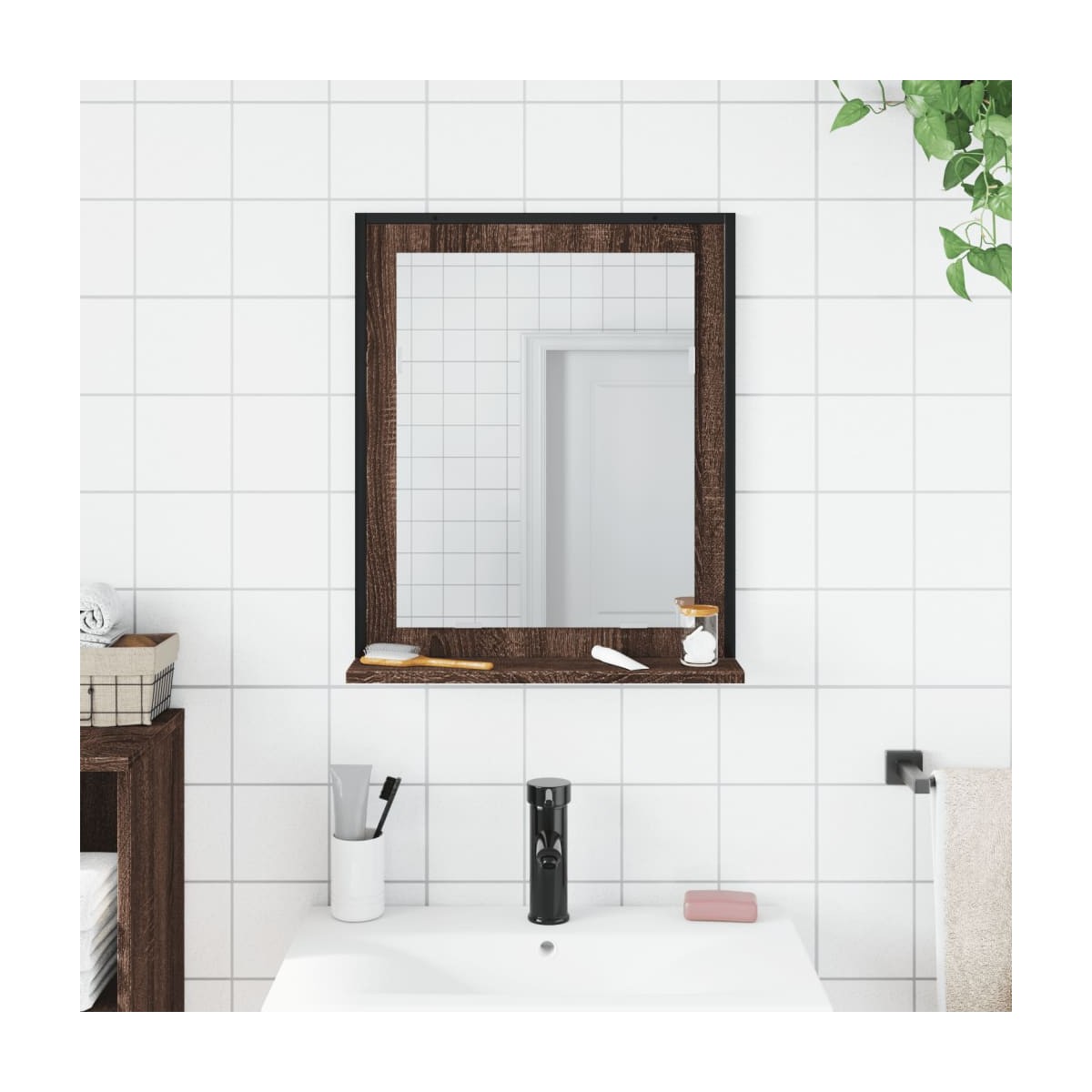 Este espejo de baño con estante es un aporte excelente para el cuarto de baño, ¡ya que le dará un aspecto ordenado y llamativo! Material robusto: La madera contrachapada tiene una calidad excepcional, con una superficie lisa y también cuenta con fuerza, estabilidad y resistencia a la humedad.Estante de almacenaje extra: El espejo de baño cuenta con un estante inferior que ofrece un plus de espacio de almacenamje para colocar artículos de baño como cepillos de dientes, limpiadores faciales, maquinillas de afeitar, etc.Función de montaje en pared: El espejo se puede colgar en la pared para ahorrar espacio en el suelo, por lo que resulta muy adecuado para habitaciones con espacio limitado.Imagen nítida: La cara de cristal del espejo proporciona un reflejo fino y sin distorsiones, por lo que sirve para maquillarse, afeitarse o mirar si vas bien vestido antes de salir. Información útil:Los tornillos y los tacos para el interior de la pared no están incluidos. Recomendamos encontrar y utilizar tornillos y tacos adecuados específicamente para las paredes. Si no estás seguro, puedes consultar con un profesional. Lee y sigue cada paso de las instrucciones.