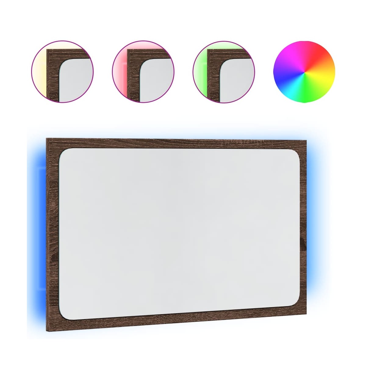 El espejo de baño presenta un diseño elegante que combina funcionalidad y estilo, lo que lo convierte en un complemento perfecto para la decoración de cualquier baño.Material duradero: La madera de ingeniería es de una calidad excepcional con una superficie lisa y también presenta fuerza, estabilidad y resistencia a la humedad. Hecho de madera de ingeniería el espejo del baño es fácil de limpiar.Imagen clara: El espejo de cristal proporciona un reflejo fino y no distorsionado, por lo que es adecuado para maquillarse, afeitarse o revisar el traje antes de salir.Luz LED: Equipado con una luz LED, este espejo de tocador proporciona una amplia iluminación para las rutinas diarias de aseo y cuidado de la piel, lo que garantiza una visibilidad y precisión óptimas.Diseño montado en la pared: El espejo LED se puede montar en la pared. De este modo, podrás maximizar el espacio del suelo y mantener la zona limpia.Información útil:El producto tiene un conector USB que necesita una fuente de alimentación USB certificada de 5 V (no incluida).Los tornillos y los tacos para el interior de la pared no están incluidos. Recomendamos encontrar y utilizar tornillos y tacos adecuados específicamente para las paredes. Si no estás seguro, puedes consultar con un profesional. Lee y sigue cada paso de las instrucciones.