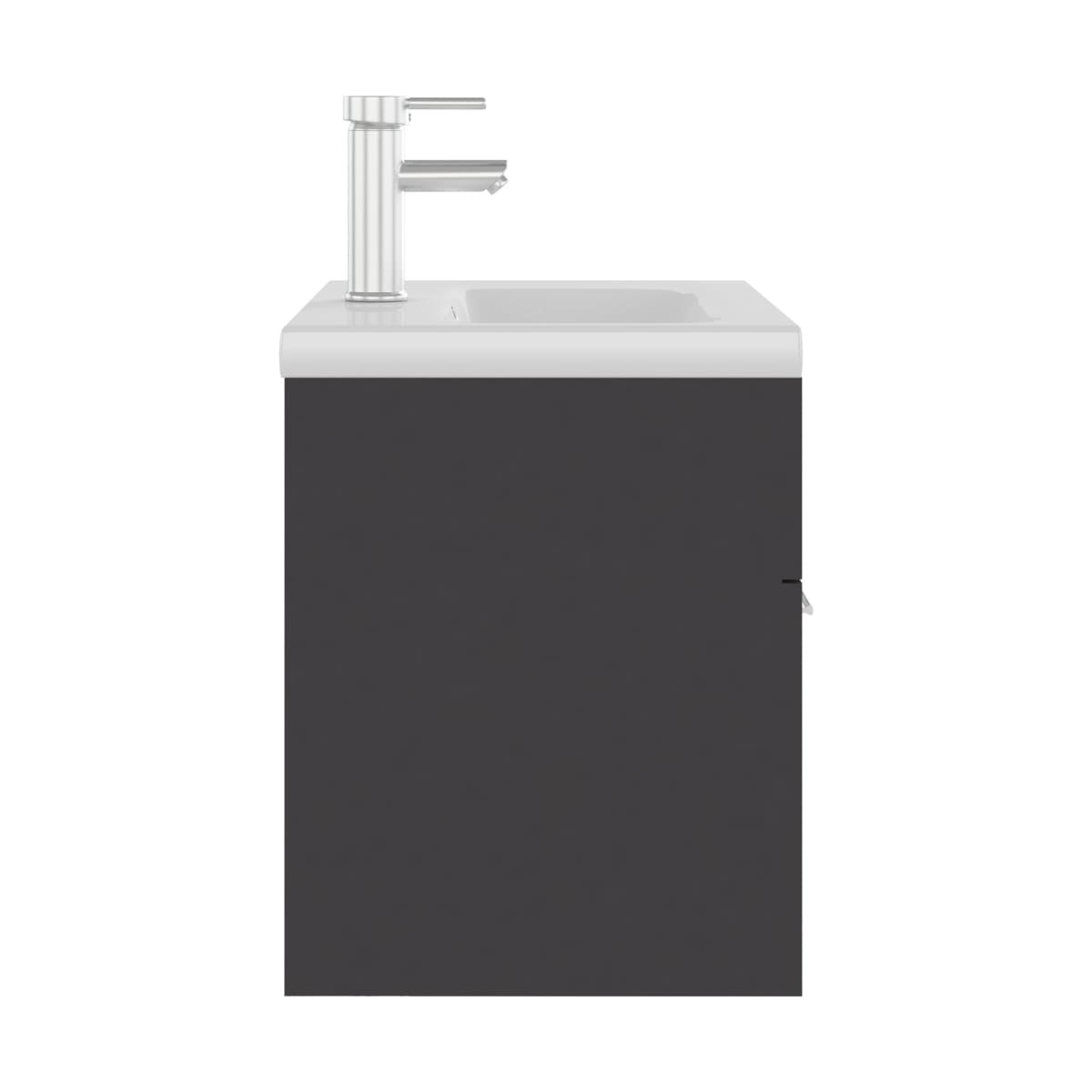 Este armario fregadero con lavabo incorporado es una combinación perfecta para tu baño o aseo con un aspecto llamativo y ordenado. El armario es de madera contrachapada, lo que lo hace robusto y estable. El armario de almacenamiento tiene 1 compartimento y 2 puertas, ofreciendo un amplio espacio para almacenar artículos. Cabe perfectamente debajo del lavabo y hace que el almacenamiento en el baño sea bastante práctico. Hecho de cerámica, el lavabo no solo puede servir como recipiente para el uso diario, sino también como adorno en tu casa. Gracias a su diseño vanguardista y moderno, este lavabo definitivamente se adaptará a cualquier decoración. Un rebosadero también está equipado para hacer salir el agua cuando se llena demasiado. Su superficie acristalada aporta un diseño moderno pero elegante. Además, el armario y el lavabo son fáciles de limpiar con un paño húmedo. Ten en cuenta que el grifo y el escurridor de empuje con función de desbordamiento están incluidos en la entrega.