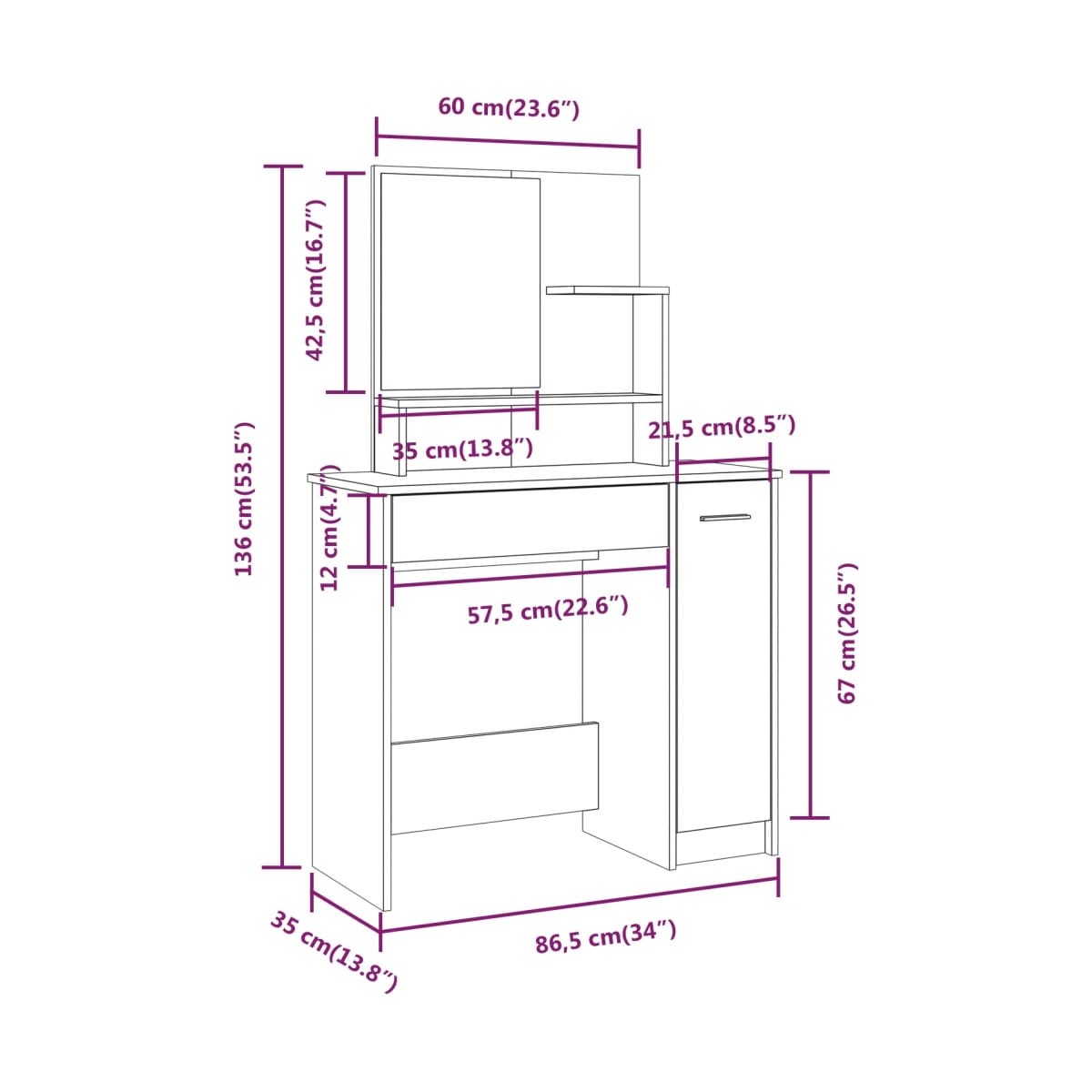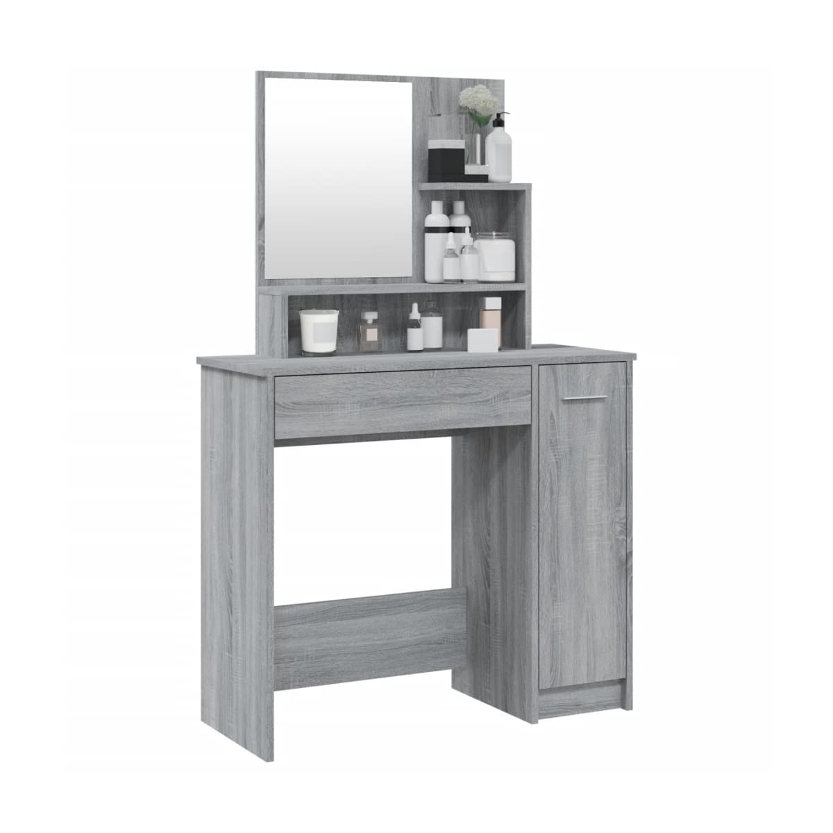 Este tocador dará un aspecto atemporal y elegante al dormitorio. ¡La mesa de tocador con espejo es un gran aporte para la decoración de tu dormitorio y para tener el maquillaje a mano al mismo tiempo! Material de primera calidad: La madera contrachapada tiene una calidad excepcional, con una superficie lisa, y también cuenta con fuerza, estabilidad y resistencia a la humedad. Hecha de madera contrachapada, esta mesa de tocador es fácil de limpiar.Amplio almacenaje: El cajón, los compartimentos y los estantes abiertos del tocador ofrecen espacio para artículos de maquillaje y lo mantienen todo ordenado.Espejo útil: El bonito espejo incluido proporciona una visión clara para ponerte maquillaje y añade un toque elegante al tocador.Puerta práctica: Mantén ordenado el espacio al esconder pequeños objetos esenciales detrás de la puerta de esta mesita para joyas. Advertencia:Para evitar el vuelco, este producto debe usarse con el dispositivo provisto para fijarlo a la pared. Nota:Cada producto viene con un manual de montaje en la caja para facilitar el montaje.
